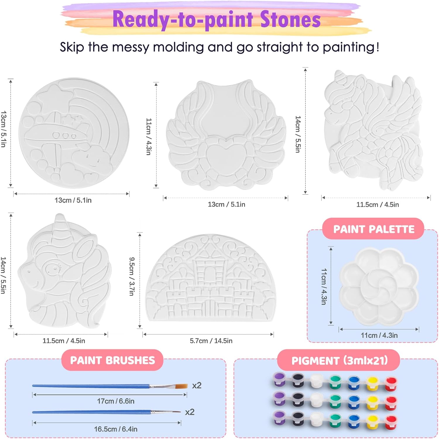 - Safe, Non-toxic and Durable:This stepping stone kit is made of high-quality and non-toxic ceramic.All color of this friendly DIY paint set is safety for kids to paint and easy to clean. Ceramic painting kit is strong and durable with protective cushion on the back and will not break easily even if it is dropped from a high place