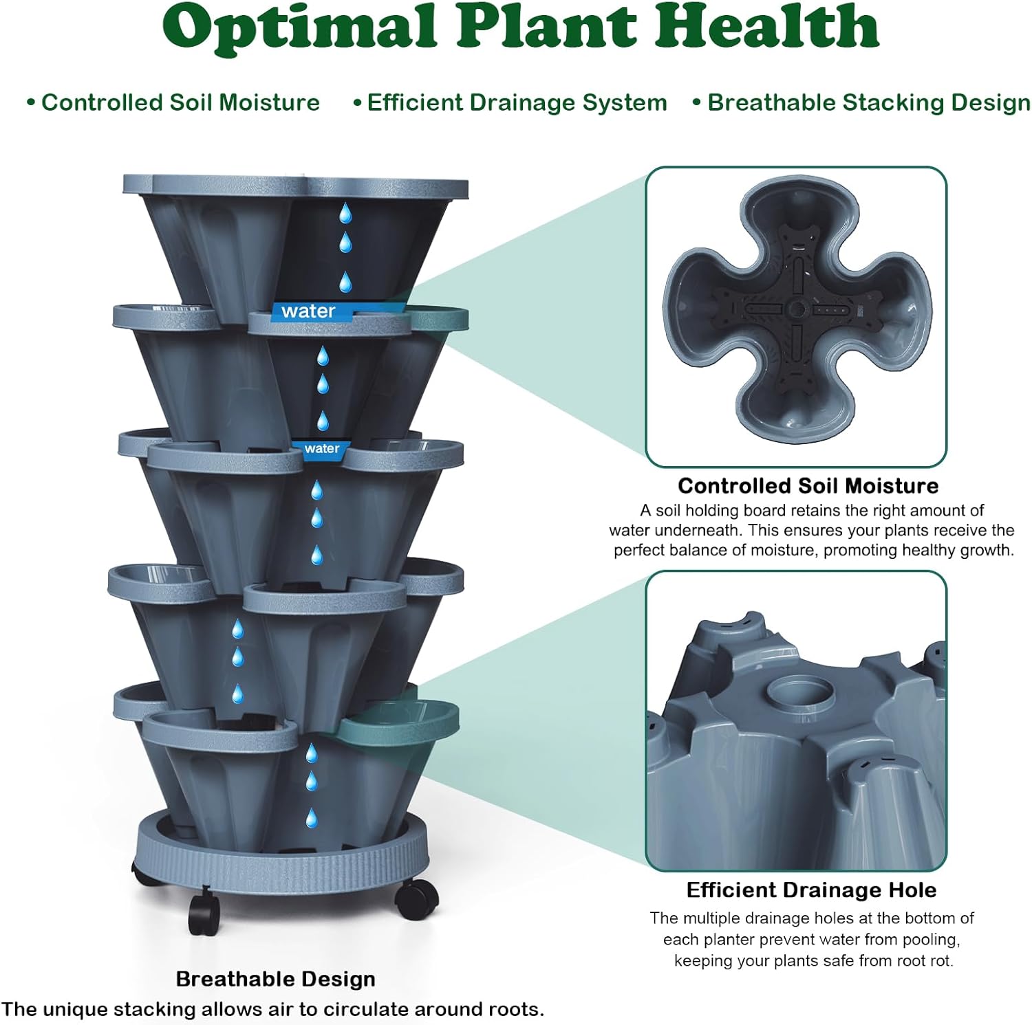 - Planting Versatility & All-Around Use - Enjoy a wide range of planting options with these stacking planters, as each tier can host up to four different plants, from strawberries to flowers. And with their indoor-outdoor versatility, you can transform any living space or patio into a beautiful, blooming oasis.