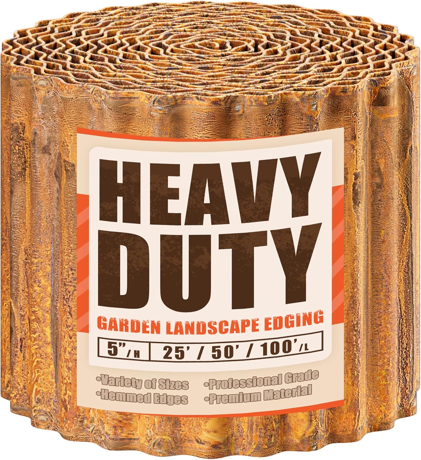 Corrugated Metal Garden Edging, 5''×25Ft Steel Landscape Edging Border, Flower Bed Edging Borders, Metal Lawn Edging for Landscaping, Garden, Pathway, Lawn, Flower Bed, Garden Fence (Rusty)