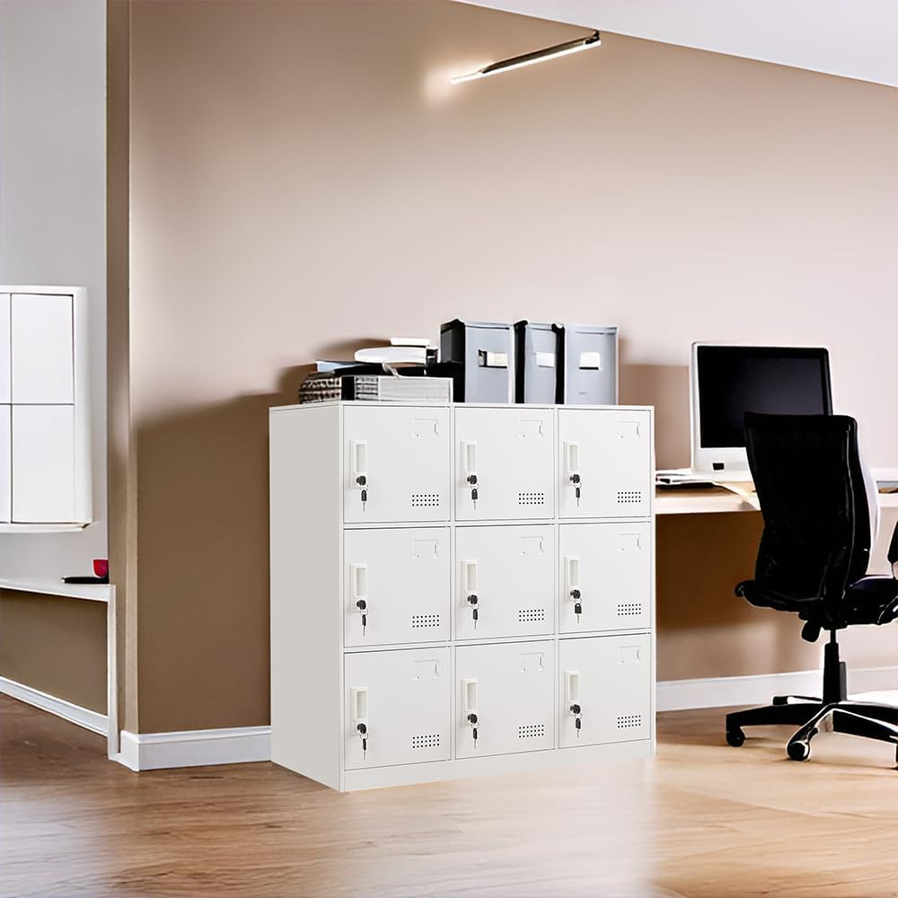 Student Locker Organizer, Multi-Door Steel Locker, Small Locking Cabinet Storage Organizer, Office File Cabinet, Home Locker, Gym Locker, Metal Storage Locker - Gray and White (9 Door, White)