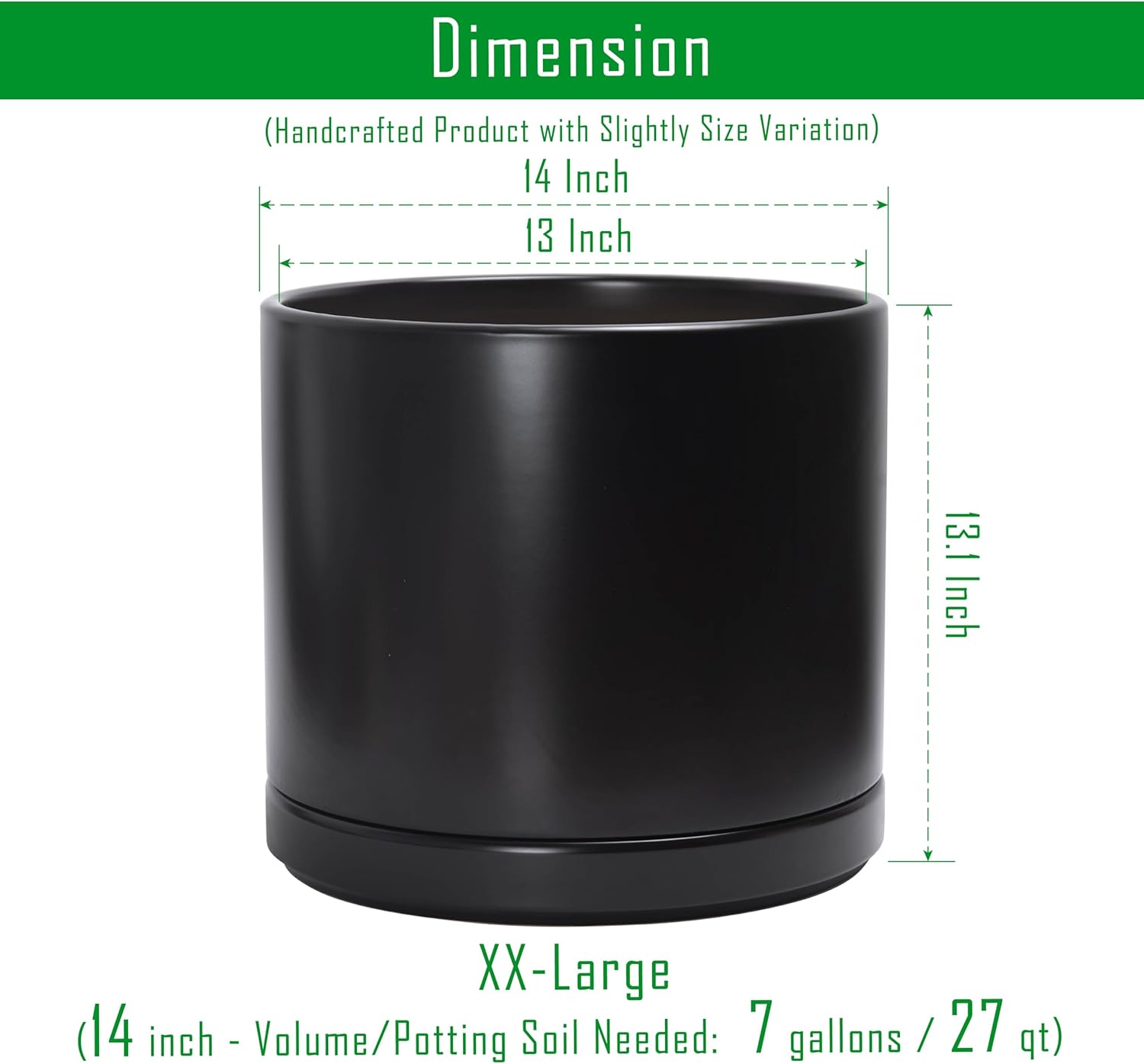- XXLarge 14 Inch Planter Pot: 14" Diameter x 13.1" H, black color.