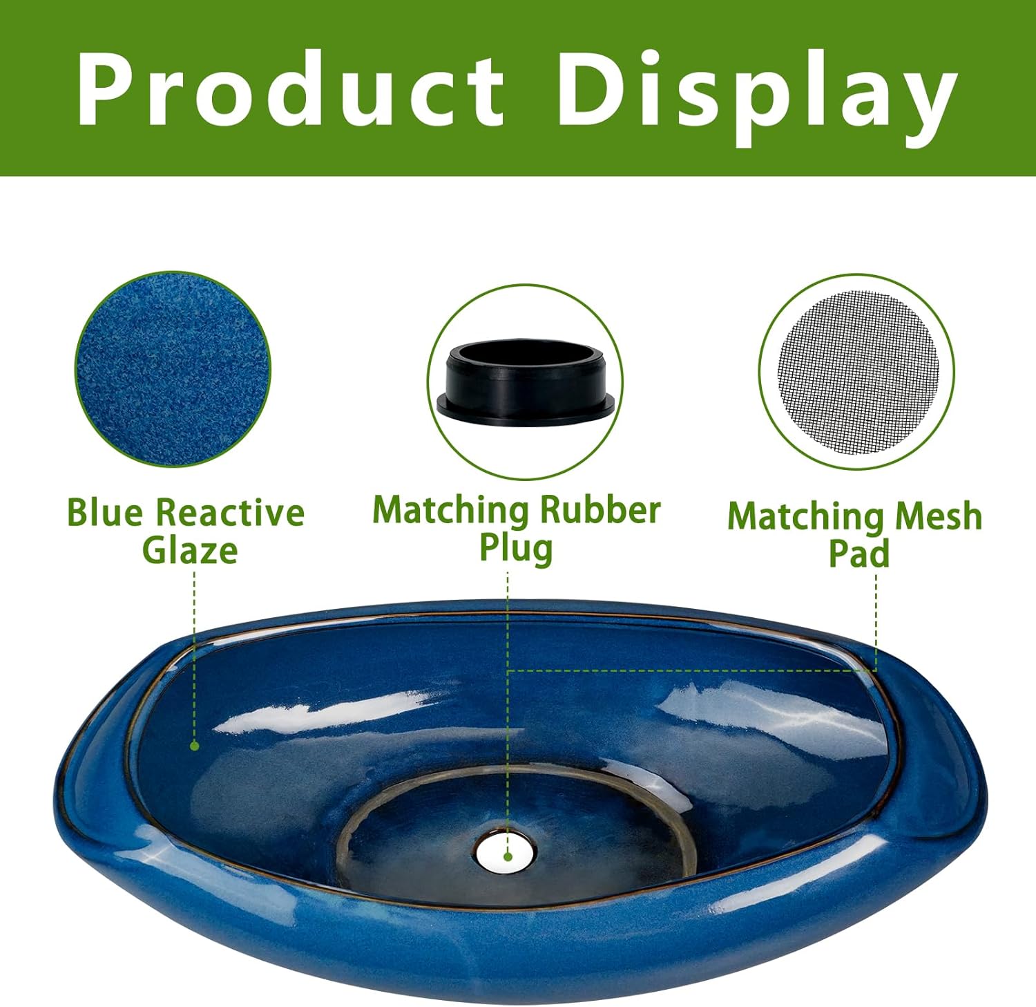Bonsai Tree Pot 18 Inch - Ceramic Succulent Pots Large Bonsai Planter for Indoor Outdoor Plants Decorative Plant Pot with Drainage Hole Flower Pot for Home Garden Room Decor Blue