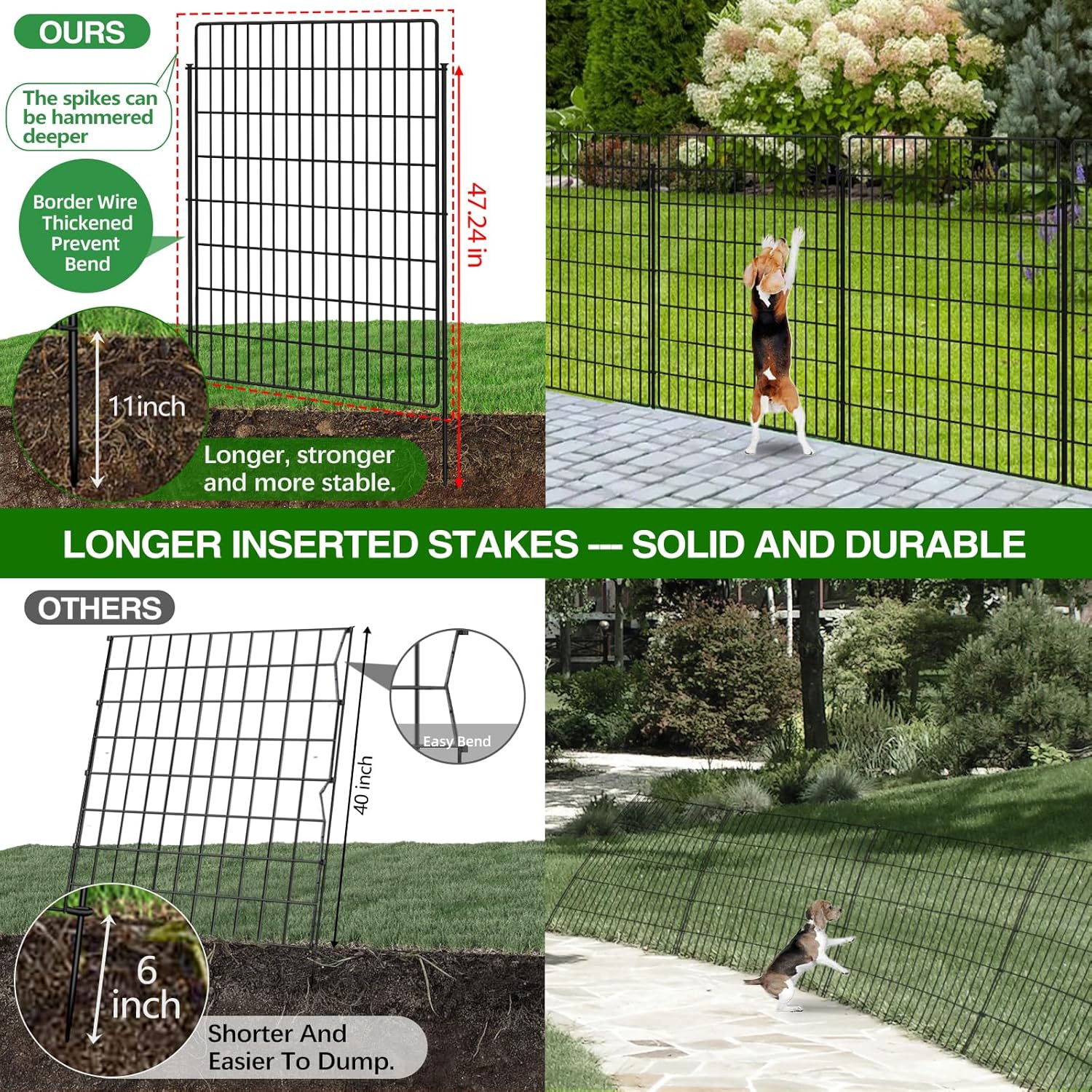- Stable and Long-lasting --- Thickened metal stakes with an 11 in in-ground stake section, securely anchor the fence to the ground, able to withstand bending and provide reliable performance for years to come. Made from high-quality, rustproof metal that won't warp over time, fencing is sturdy and easy to maintain, and can withstand harsh weather conditions, ensuring your garden is protected all year round.