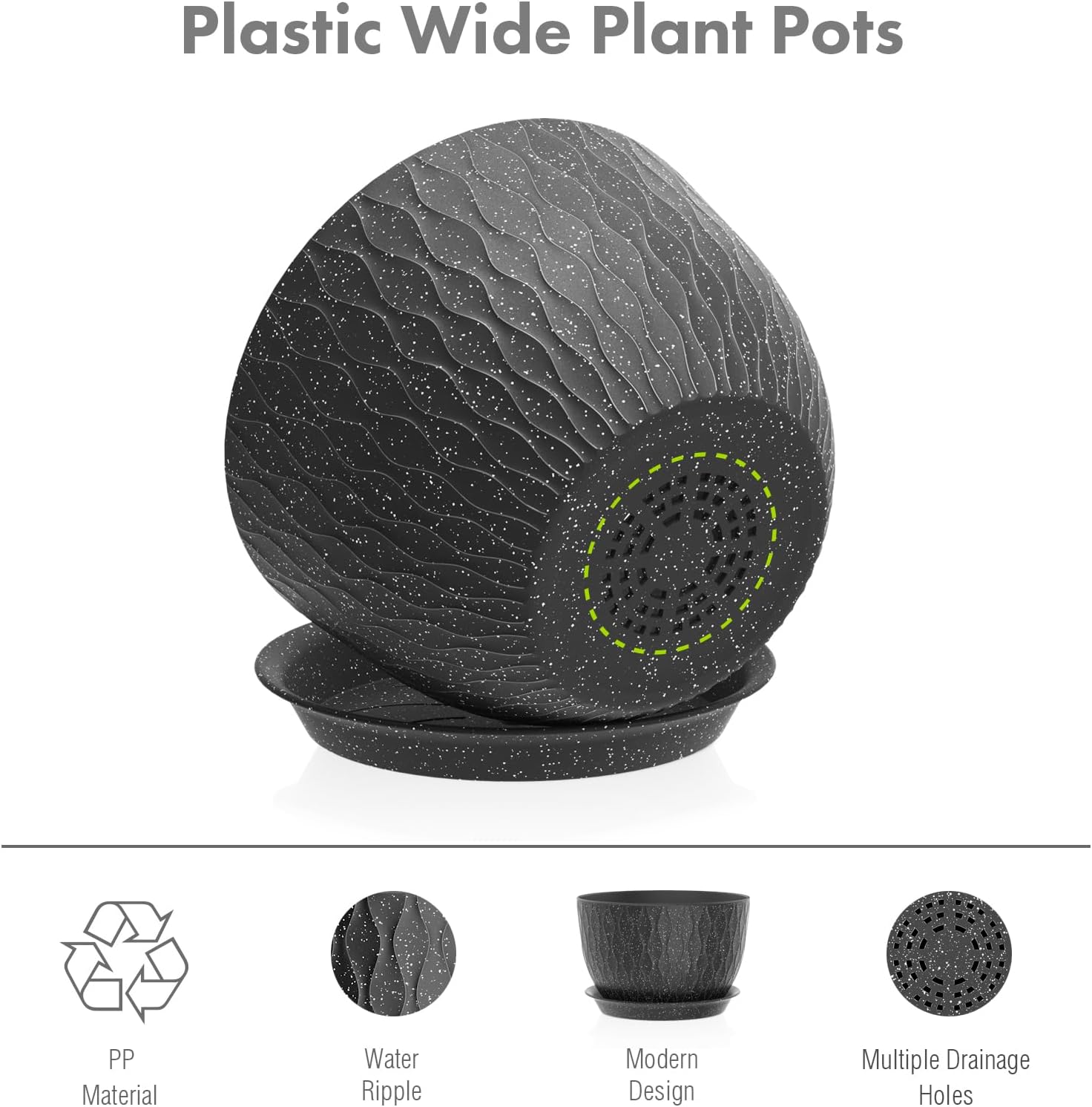 - 【Gift Idea】An excellent gift choice for plant enthusiasts and garden lovers. Add a touch of modern elegance to your green spaces with this water ripple wide flower pot set of 3. BTW, you can use your imagination to color the pots or DIY to make your unique own one