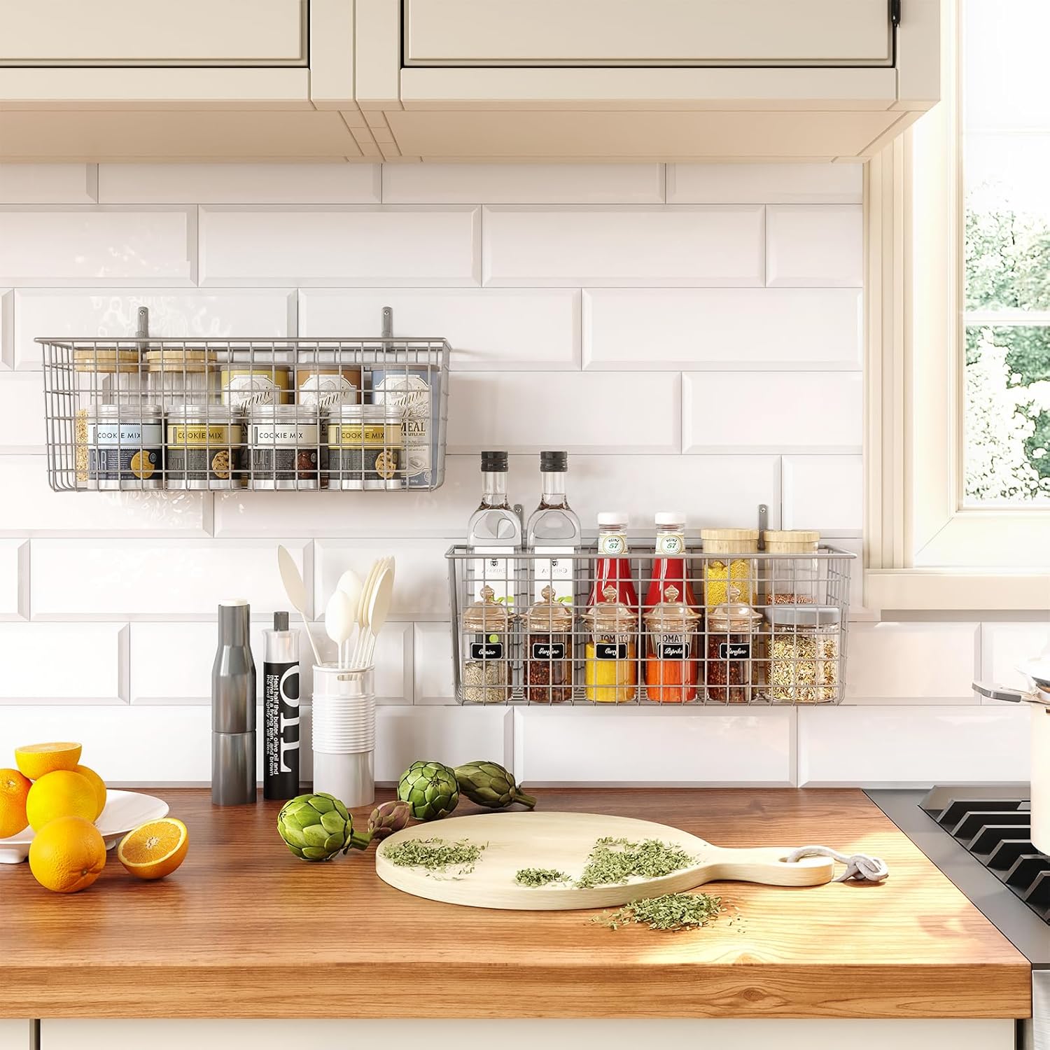 - Neat and Space Saving Organizer: They are ideal wall mounted storage baskets for home decor clearance, pantry, kitchen, cabinet, door, bathroom, bedroom, laundry,, closet, craft rooms, garage, office , farmhouse and more. You can also put it on sink, counter and other table tops. Make your storage double as décor for a streamlined and organized home.