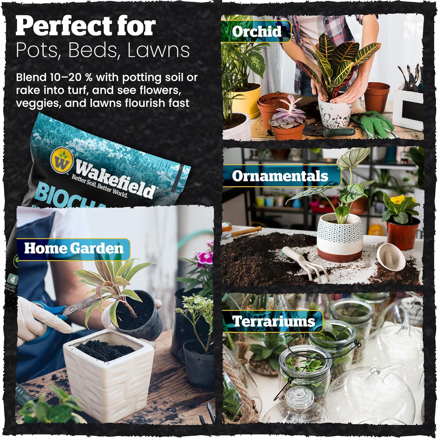 Wakefield Premium Biochar Soil Conditioner – 100% Pure Organic Biochar Soil to Boost Nutrient Retention and Water Efficiency for Houseplants, Gardens, & Lawns – 4 Quarts