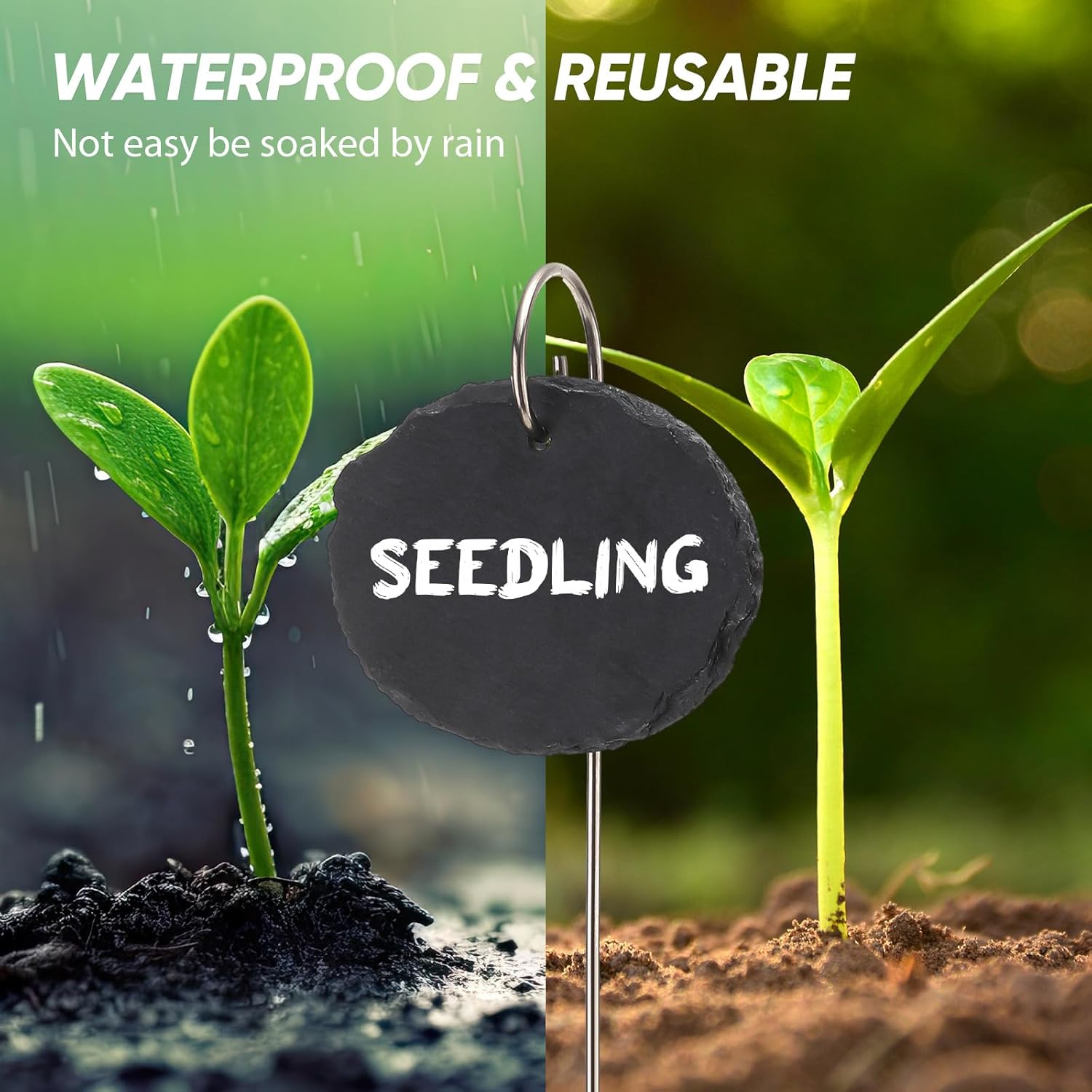 - Erasable and Reusable: these12 sets of slate plant markers are equipped with 2 pieces of white paint pen, mark the plants with the chalk or a paint pen if you plan to reuse, and wipe clean with a damp cloth before relabeling