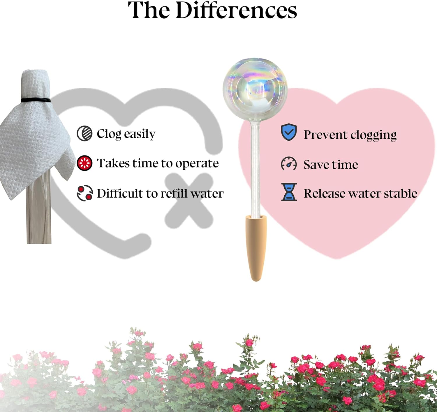 - 【No Clogging, No Need to Wrap The Spout with A Cloth Any More】Since It works through osmosis, the small terracotta watering spikes will prevent dirts from getting into the globes, you don't need to wrap the spout with a cloth any more