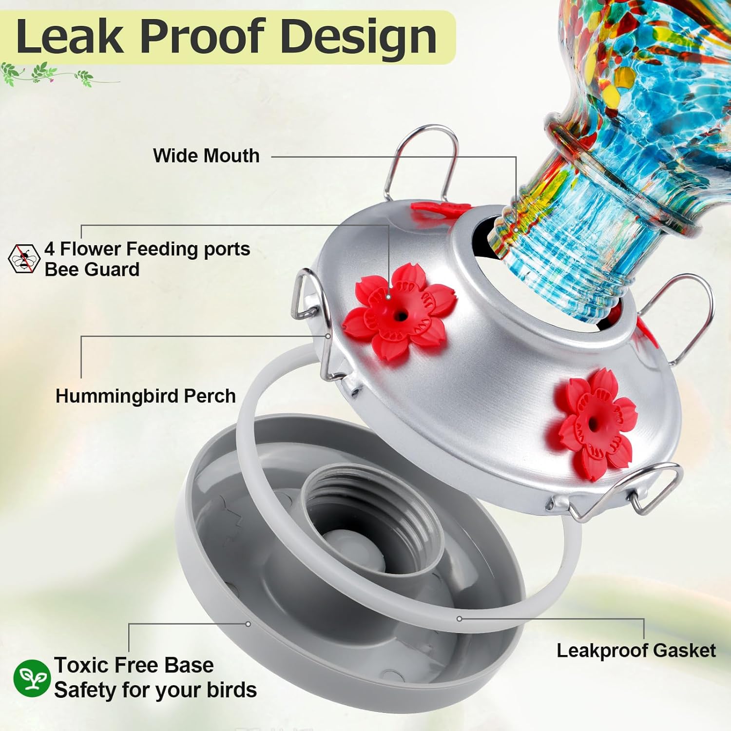 - Attract More Hummingbirds: XAROO hand-blown glass hummingbird feeder has bright and vibrant colors, effortlessly attracting surrounding hummingbirds to your yard. 4 feeding ports provide habitats for multiple hummingbirds