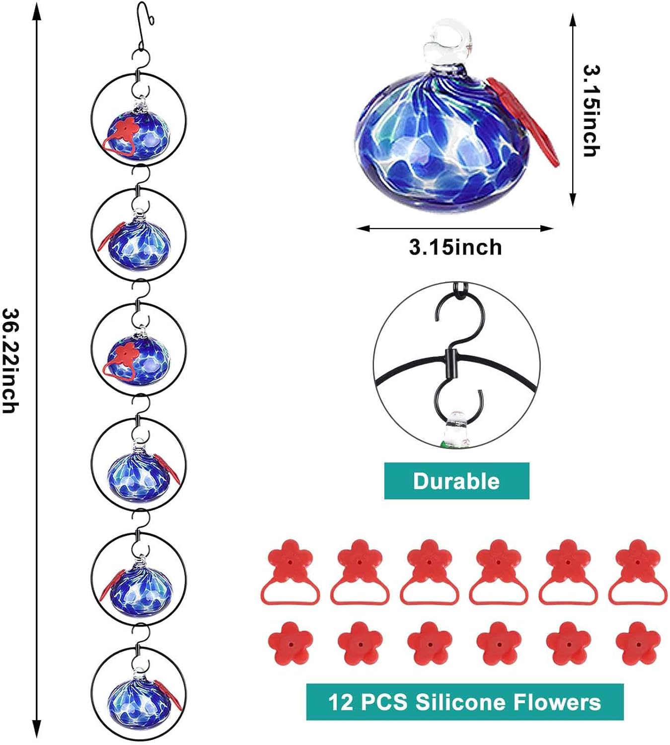 - 【Listen to user voices 】 Newly added standable silicone flower feeding port not only attracts hummingbirds quickly and protects their tongues from injury, but also provides a place for resting.