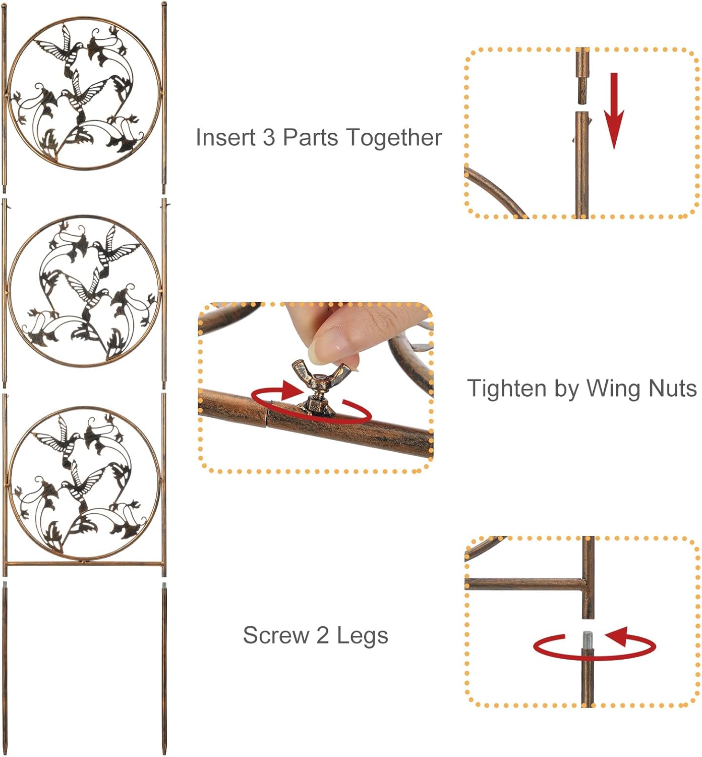 - Easy to Assemble: This pair of trellis is handcrafted and constructed of sturdy, it made from iron under a thick finish of bronze powder-coat. Easy installation is required, just insert 3 parts together, tighten by wing nuts and screw 2 legs on to stake into the ground or pots