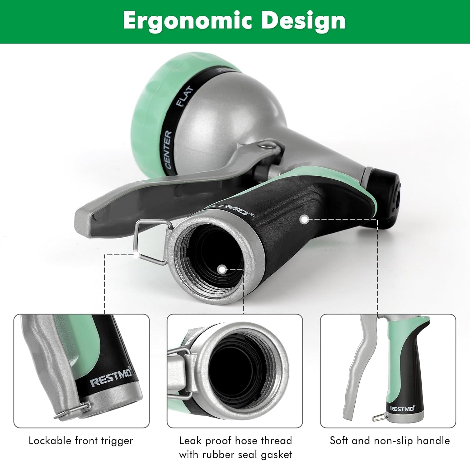 RESTMO Garden Hose Nozzle, Heavy Duty Metal Water Hose Nozzle with 7 Adjustable Spray Patterns, High Pressure Hand Sprayer with Flow Control, Best for Watering Plant & Lawn, Washing Car & Pet, Cyan
