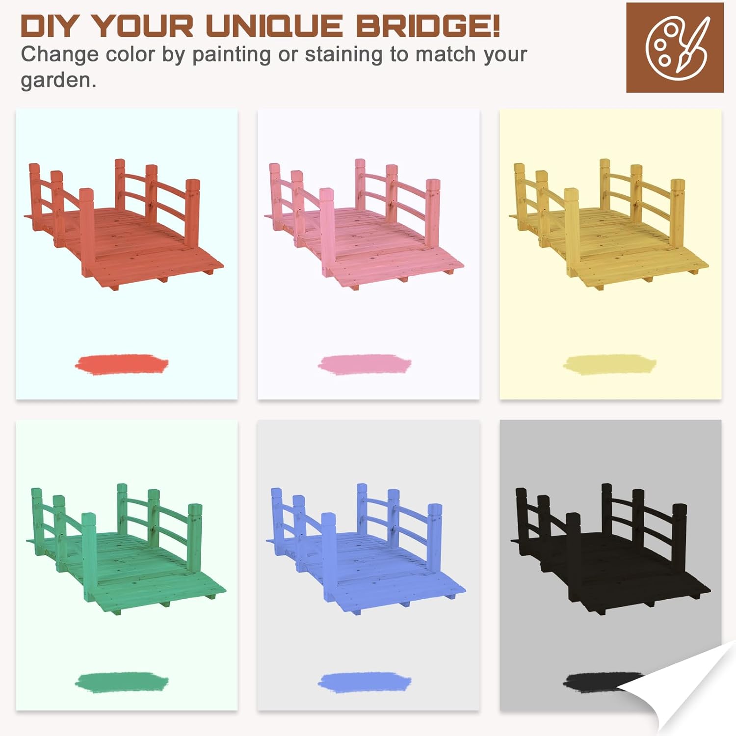 - 【Classic Aesthetics & Personalised】Our wooden bridge for yard provides a classic charm that fits all sorts of outdoor styles. Garnish the landscape of your garden whether you're going for a rustic country farmhouse look, an adventurous boho home, or your own zen garden. Smooth sanded natural finish allows you to add waterproof finish or stain to the color of your choice, the bridge's surface can be easily modified to match your unique style. Made for DIY enthusiasts and furniture lovers alike.