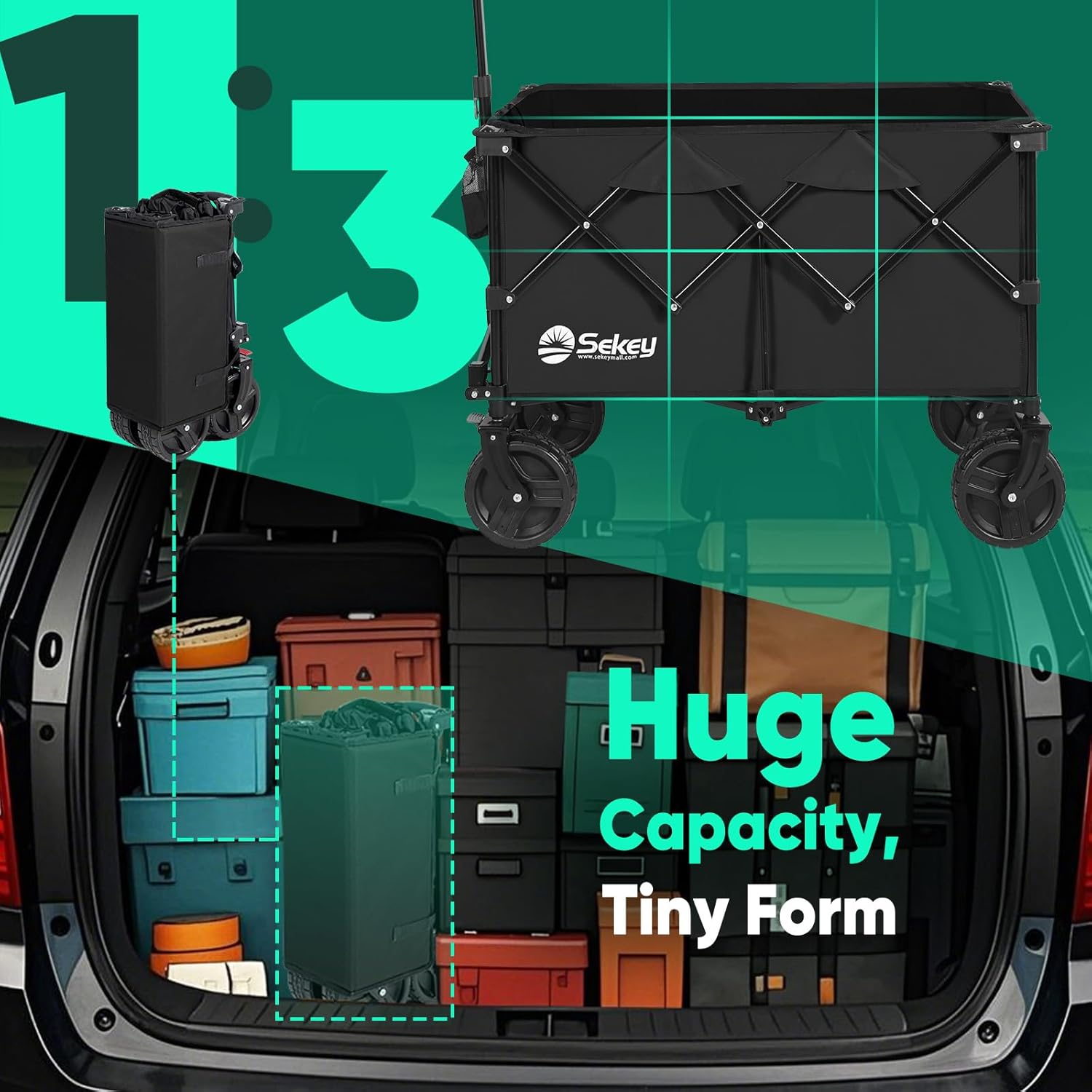 - ใ๐๐จ ๐๐ง๐ฒ๐ฐ๐ก๐๐ซ๐ ๐๐ก๐๐๐ฅ๐ฌใ: Featuring ๐" ๐๐ข๐๐ฆ๐๐ญ๐๐ซ ๐ฐ๐ก๐๐๐ฅ๐ฌ ๐๐ง๐ ๐" ๐ฐ๐ข๐๐ ๐ญ๐ซ๐๐๐๐ฌ, Sekey wagon glides effortlessly over sand and rough terrain. The ๐๐ง๐ญ๐ข-๐ฌ๐ฅ๐ข๐ฉ ๐ซ๐ฎ๐๐๐๐ซ strip enhances traction and reduces vibrations, while the ๐๐ฎ๐ข๐ฅ๐ญ-๐ข๐ง ๐๐ซ๐๐ค๐๐ฌ provide reliable stopping power wherever you go.