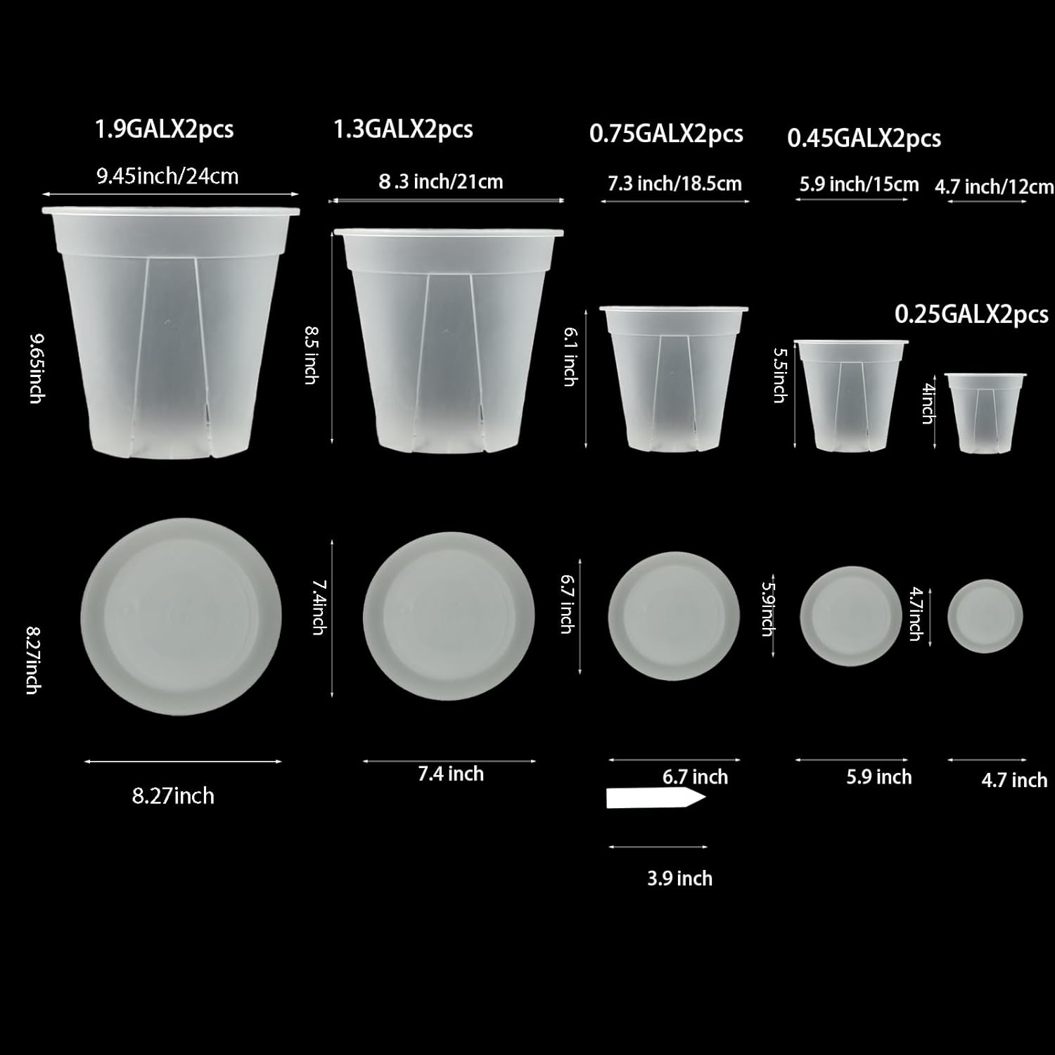 - Good assorted sizes: 5 different sizes to accommodate the growth of different plants from plant starter pots to large nursery pots. The package contained 5 inch / 6 inch / 7 inch / 8 inch / 9inch clear nursery pots.