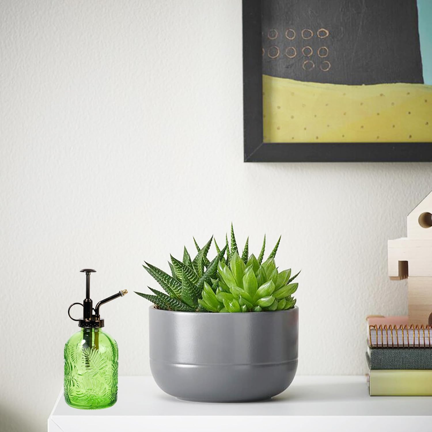 - Beautifully designed:This watering can features a leaf-patterned glass body and a bronze-colored plastic one-handed pump at the top that sprays a mist of water for watering plants to dispense a precise amount of water!