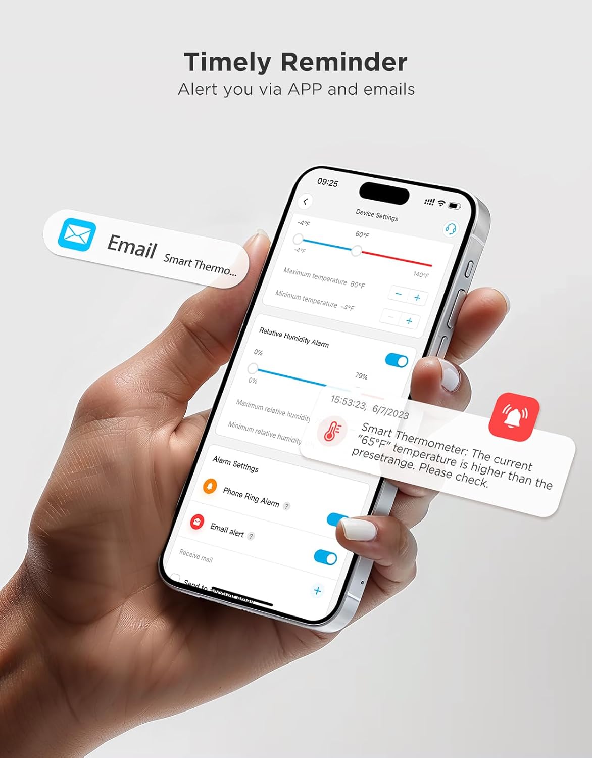 - Remote Alarm: You can preset temperature and humidity values via the app. When the hygrometer thermometer sensor detects a change, you'll receive a notification via app and email, offering enough time to react through the alarm function.Only support gateway H5151/H5042.