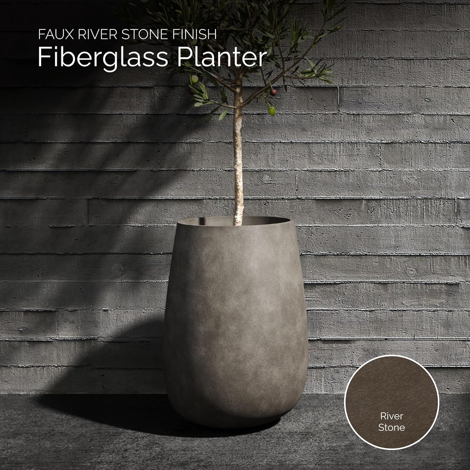 Mondo High Tall Planter – River Stone Finish – Fiberglass Indoor/Outdoor and Weather-Resistant Round Planter (25.6" D x 35.6" H Exterior, 20.3" D x 35.4" H Interior)