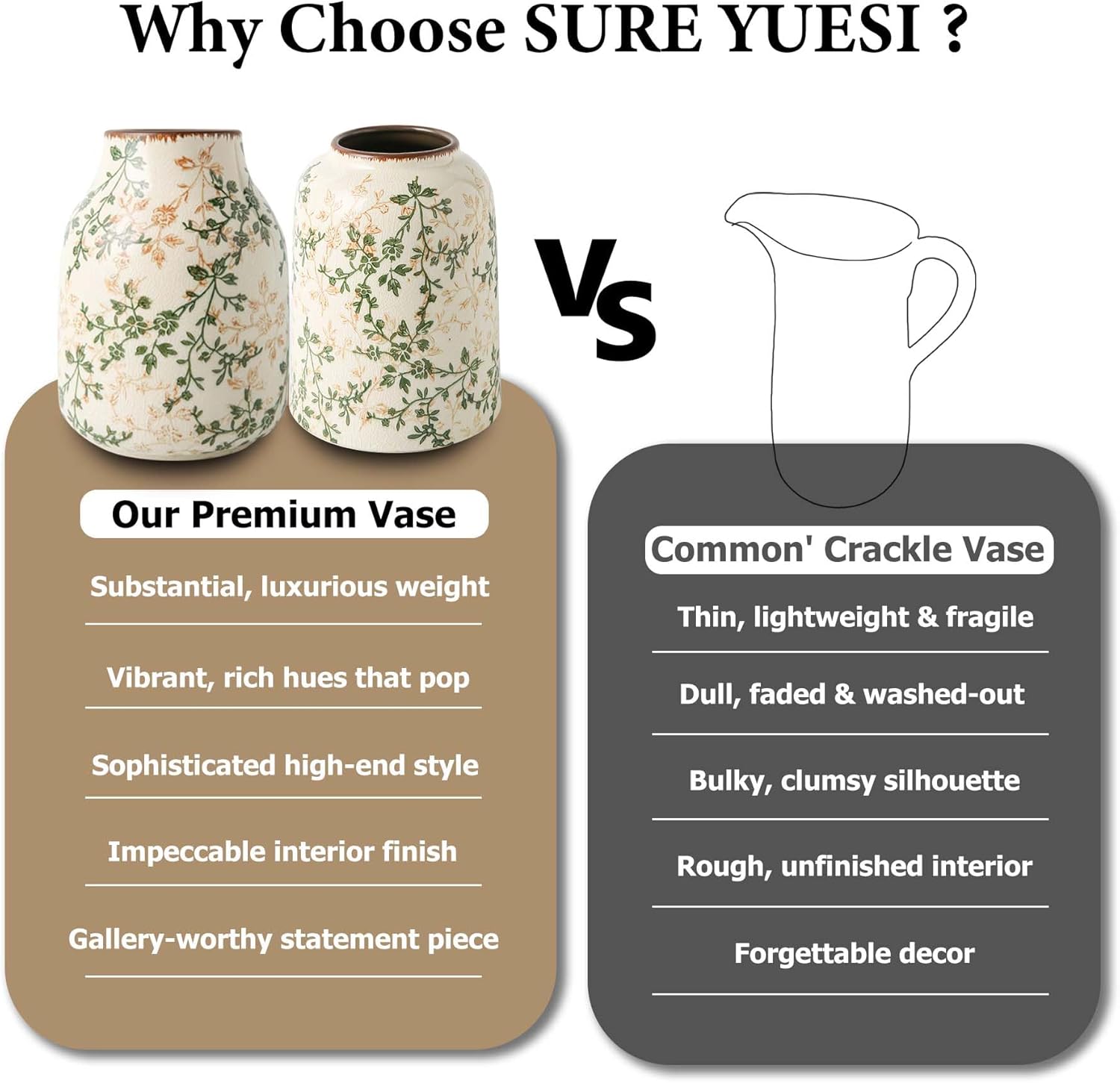 - 【Versatile Decorative Options】The SURE YUESI vase set is designed for versatility. Use them individually or as a group to decorate tabletops, mantels, bookshelves, or entryways. These large vases for decor living room and other spaces bring a harmonious balance of elegance and function to your home.