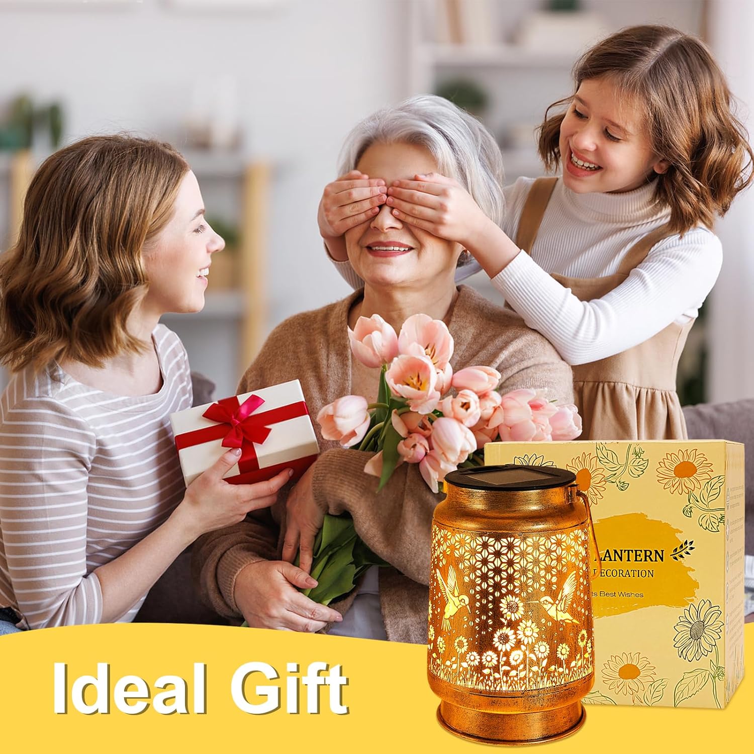 Hummingbird Solar Lanterns Outdoor Garden Decor, Birthday Gifts for Women Mom Grandma Hanging Metal Solar Lights Waterproof LED Decoration with Shepherd Hook Outside for Garden Yard Porch Lawn Patio