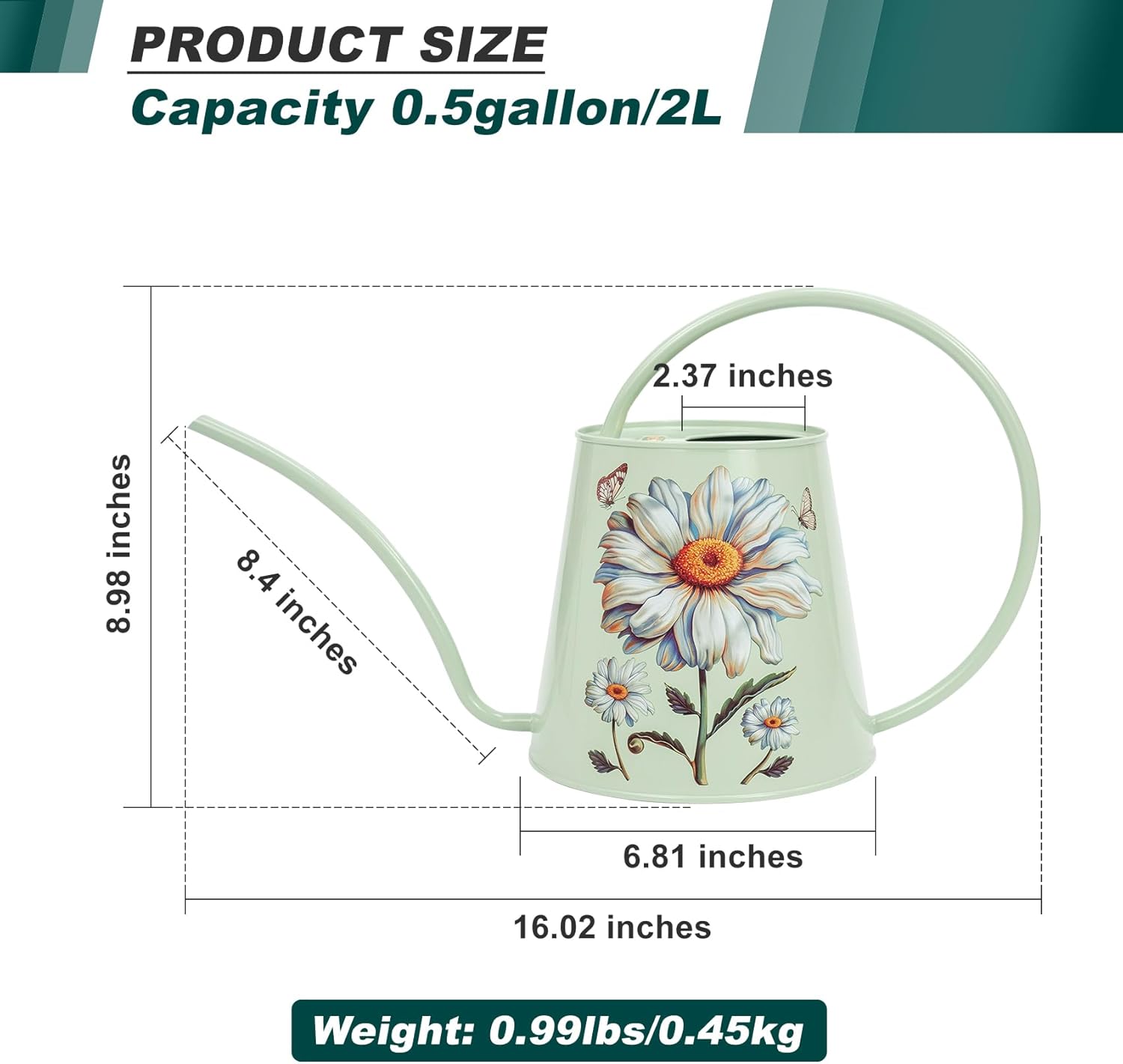 Berry&Bird House Plants Watering Can - Indoor&Outdoor 1/2 Gallon Stainless Steel Water Can with Long Spout Garden Decoration for Flower Bonsai Succulent Gardening Large Water Bottle (Bellis Perennis)