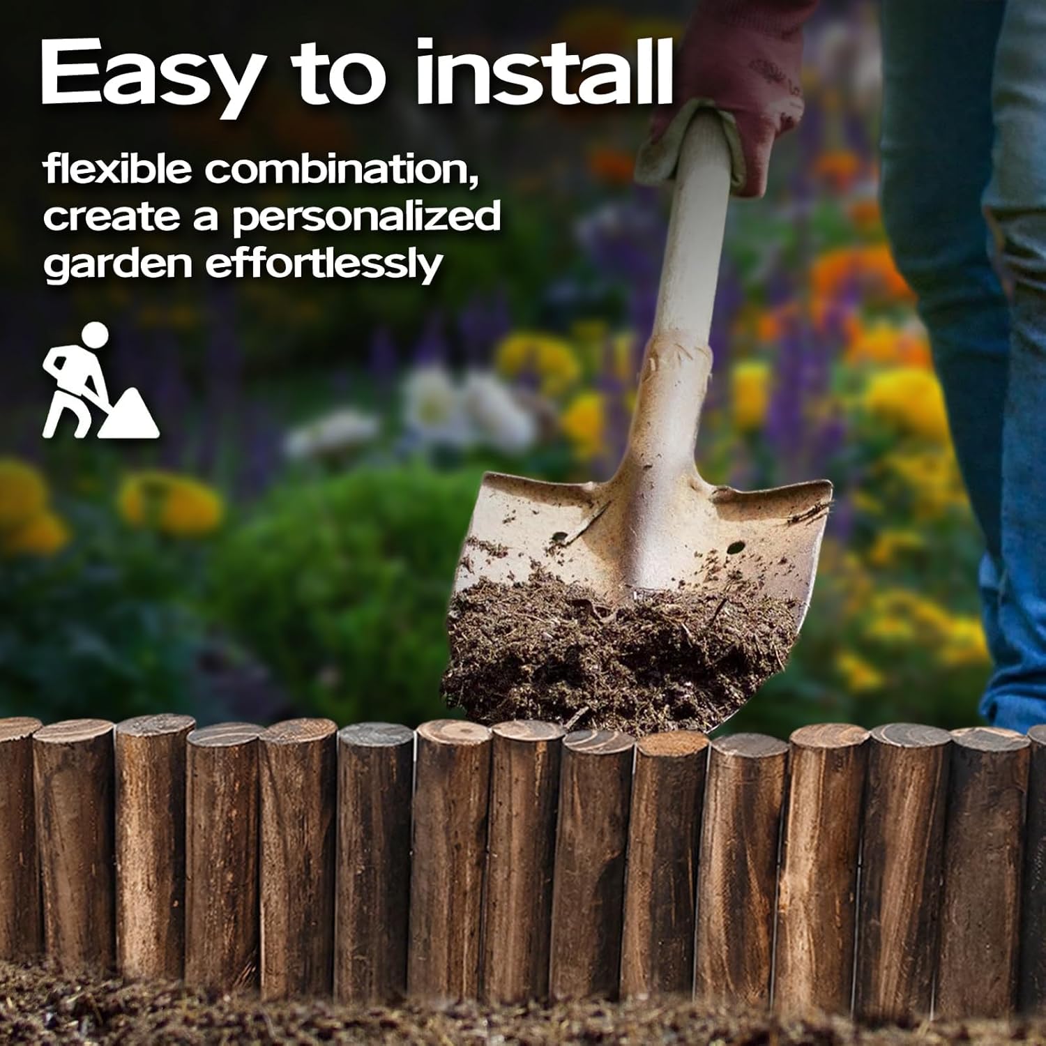 Wood Garden Fence, Natural Wooden Solid Log Edging Border Decorative for Flower Bed Barriers and Landscape Fencing (8PACK)