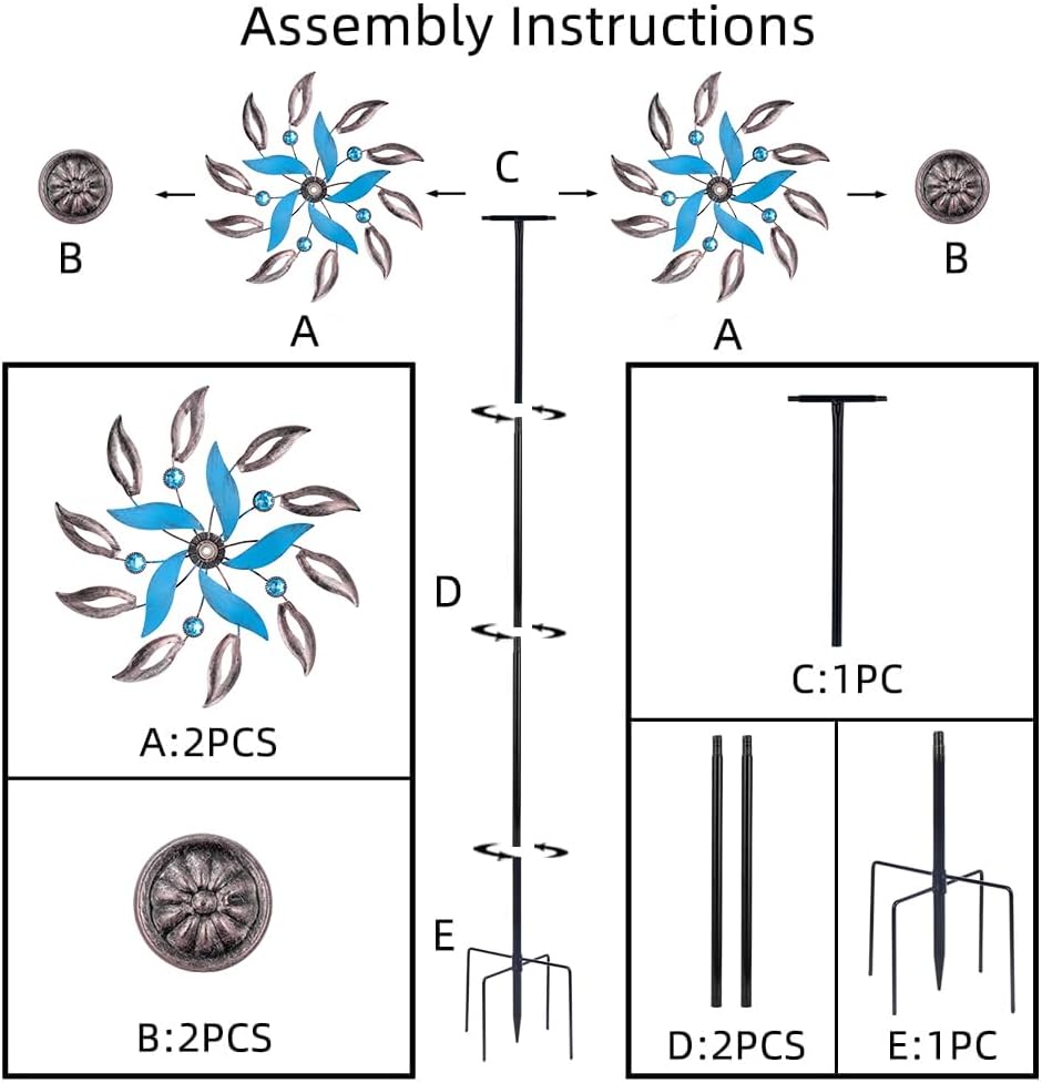 - Easy to Install:The double windmill is easy to install, no extra tools are needed, just tighten all the parts, the whole process will only take almost 5 minutes