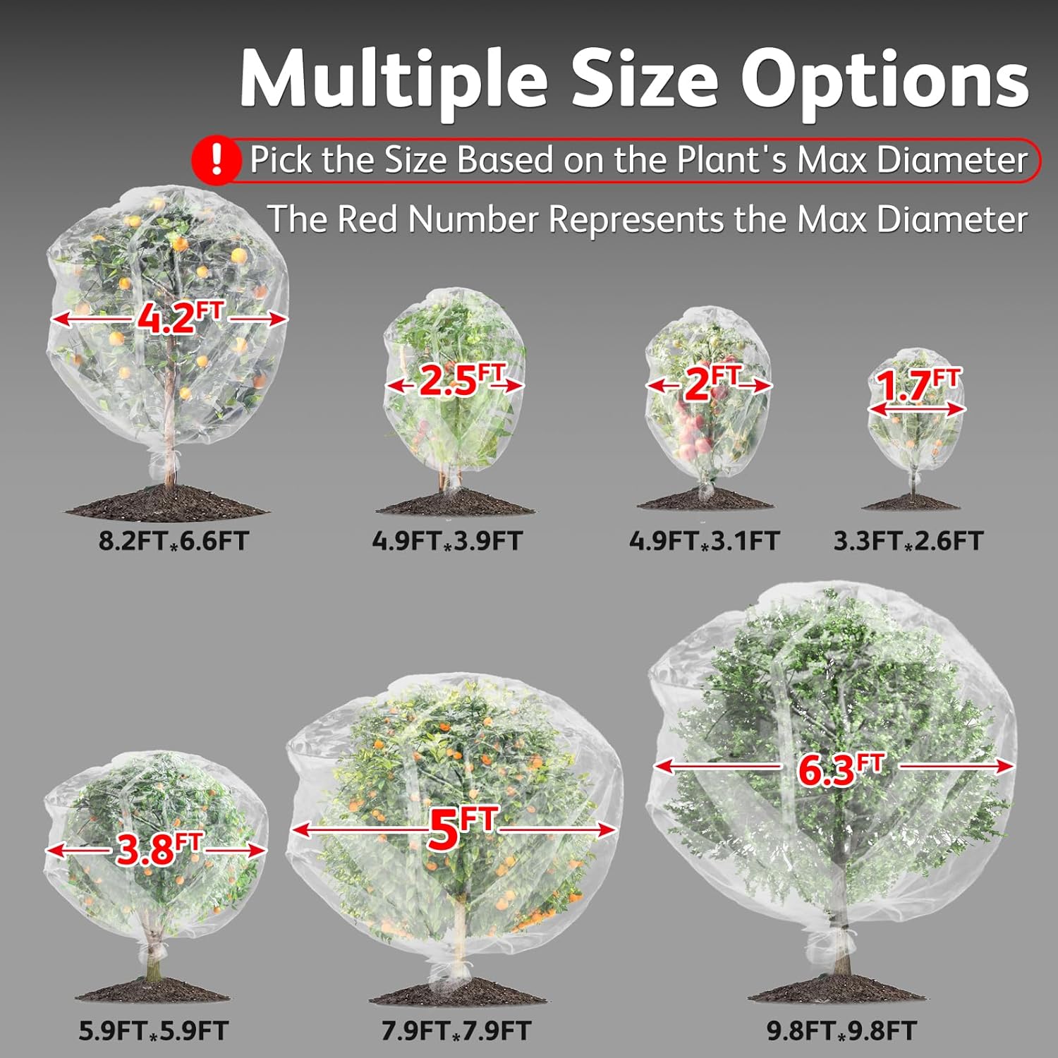 - JOJOLEE Garden Net Kit: This kit includes 4 packs of 4.9 ft(H) x 3.9 ft(W) garden net with a spread diameter of 2.5 ft. Before buying, please take the time to check the diameter and height of your plant to make sure the insect netting is sufficient to cover it.