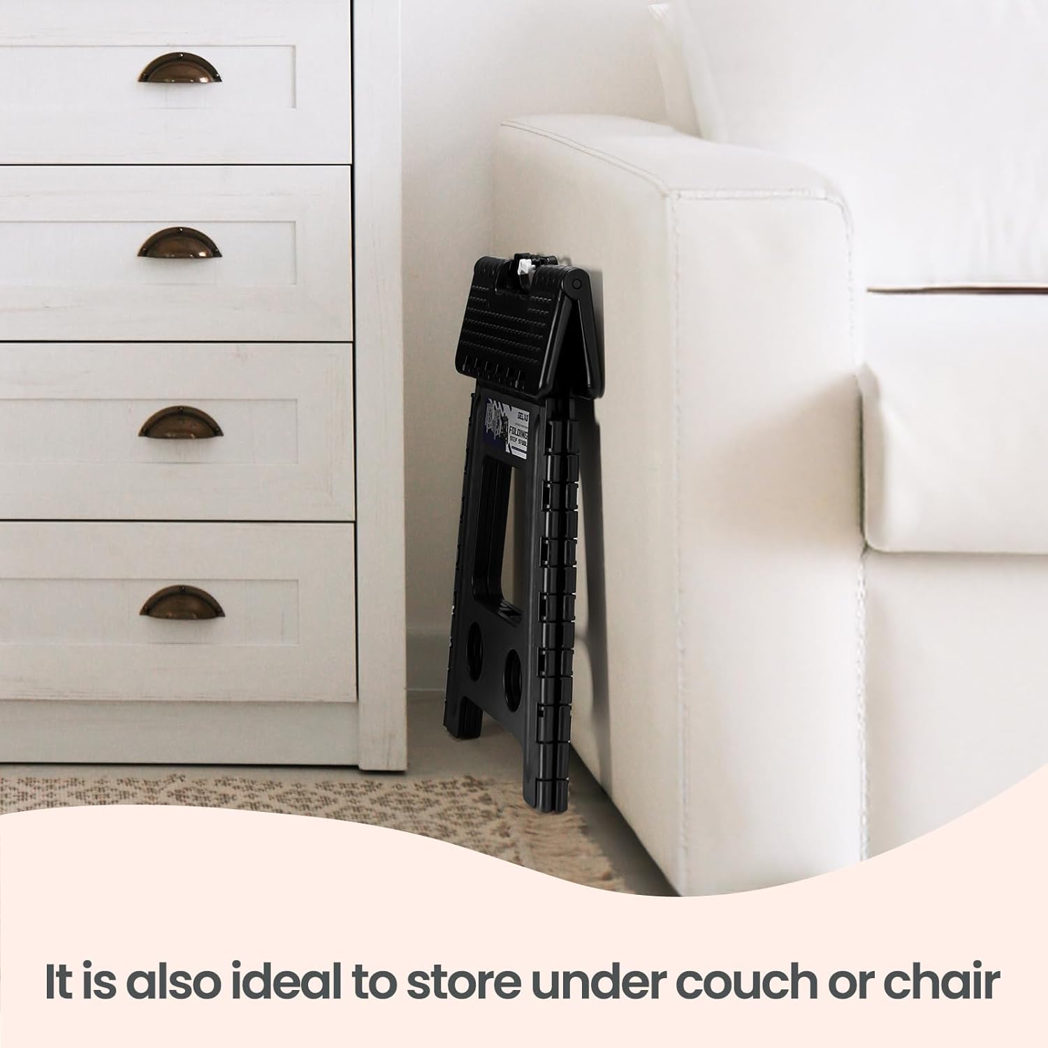 Delxo Folding Step Stool 16 Inch,Non-Slip Foldable Stools for Adults Up to 300 LBS,Kitchen Collapsible Fold Up Stepping Stool with Dotted 1 Pack,Black