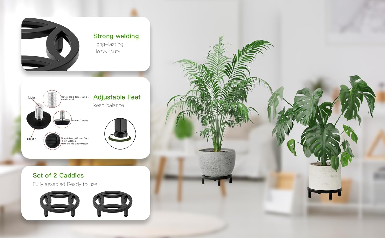 - Zhongma 2 Pack 8.7" Sturdy Potted Plant Stand Flower Pot Holder Heavy Duty Construction, Low Plant Stand for Home Indoor and Outdoor, Sturdy plant riser and saucer without Installation Required.