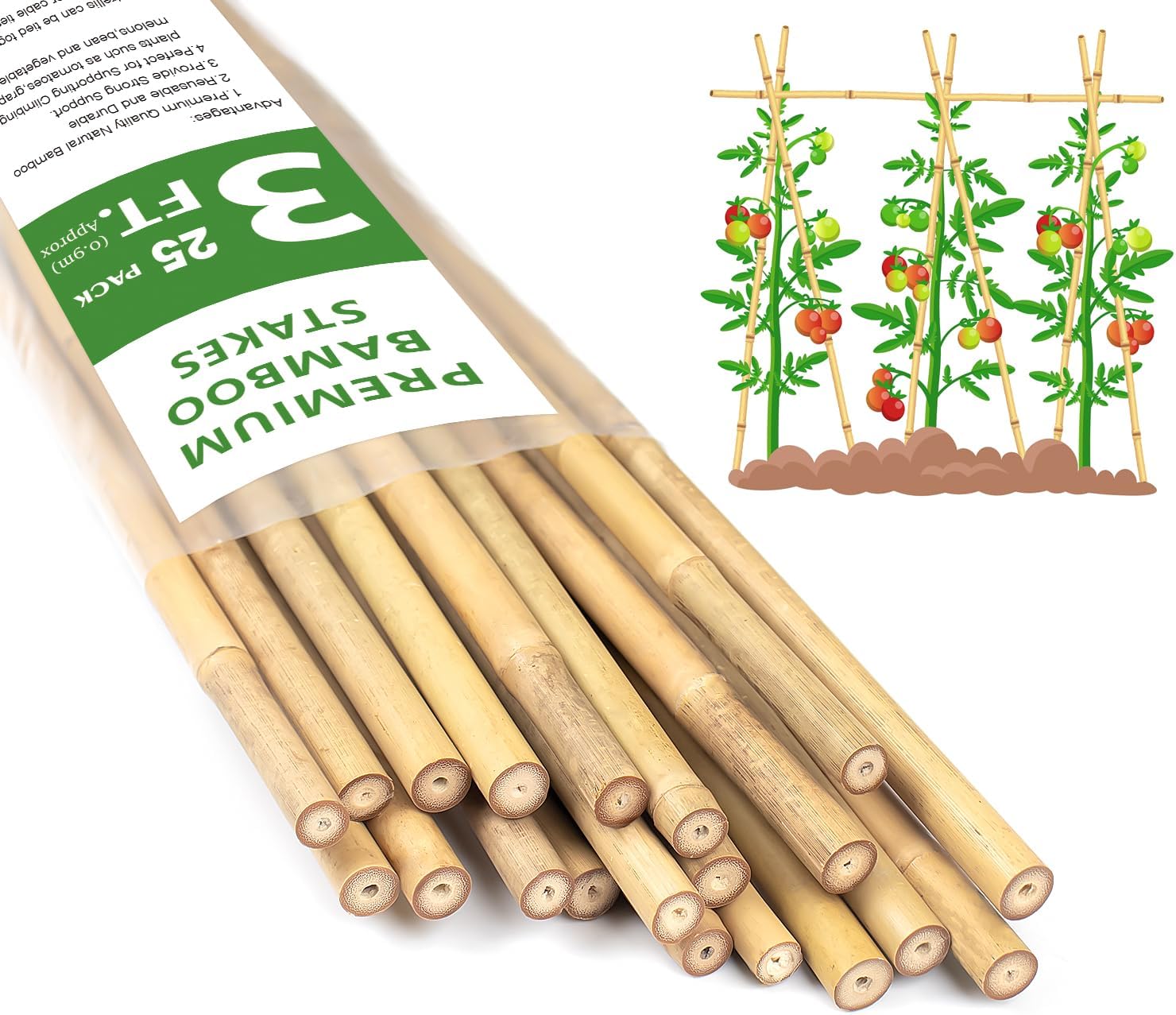 - 【Convenient Package Options】: Each package includes 25 pieces of 3-feet bamboo stakes. Available in multiple sizes (16-inch, 18-inch, 3-feet, 4-feet, and 4.8-feet) to suit any plant size and gardening requirement.
