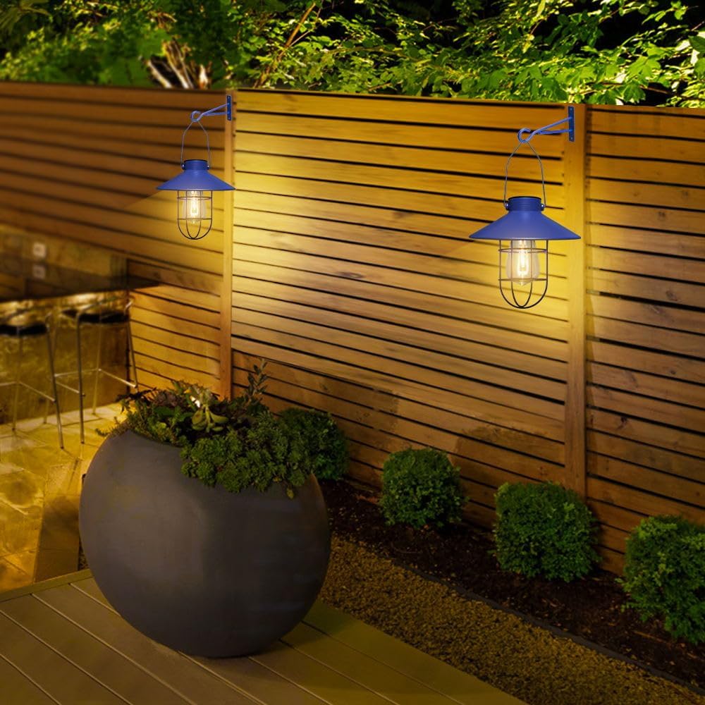 - 【ROMANTIC ENVIRONMENT】 -- Brushed blue solar hanging lantern emit a warm white light and create a romantic and comfortable space. NOTE: ONLY FOR DECORATION, NOT FOR ILLUMINATION PURPOSES