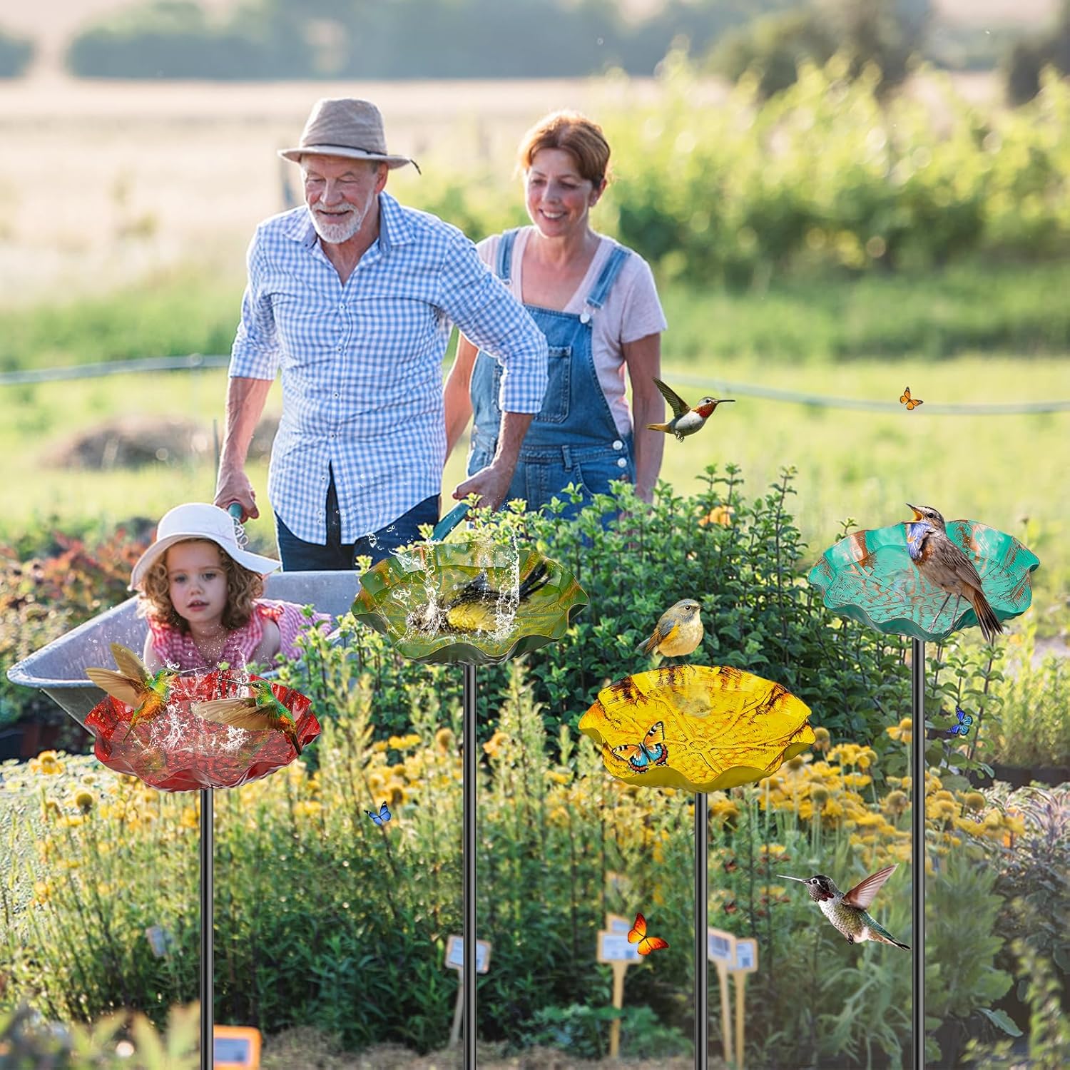 - Beautiful Garden Decor: Our outdoor metal floral birdbaths are vibrant color scheme, coupled with a vintage aged finish, makes it a stunning focal point in your outdoor space, attracting hunmmingbirds and butterflies to your garden