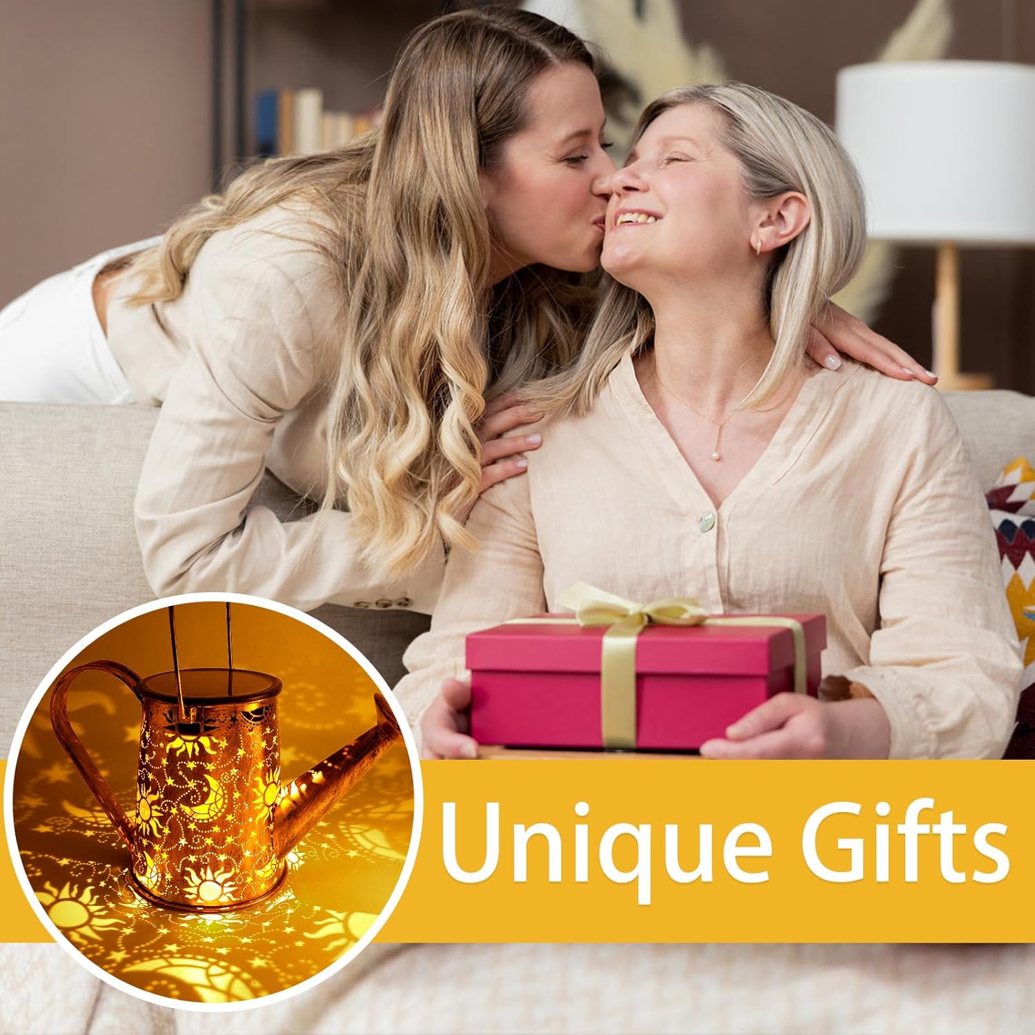 Solar Garden Lights Outdoor, Solar Watering Can Lights Garden Decor Gifts for Grandma Mom, Sun Moon Waterproof Hanging Lantern with String Lights, Yard Decoration for Patio Porch Lawn Backyard Pathway