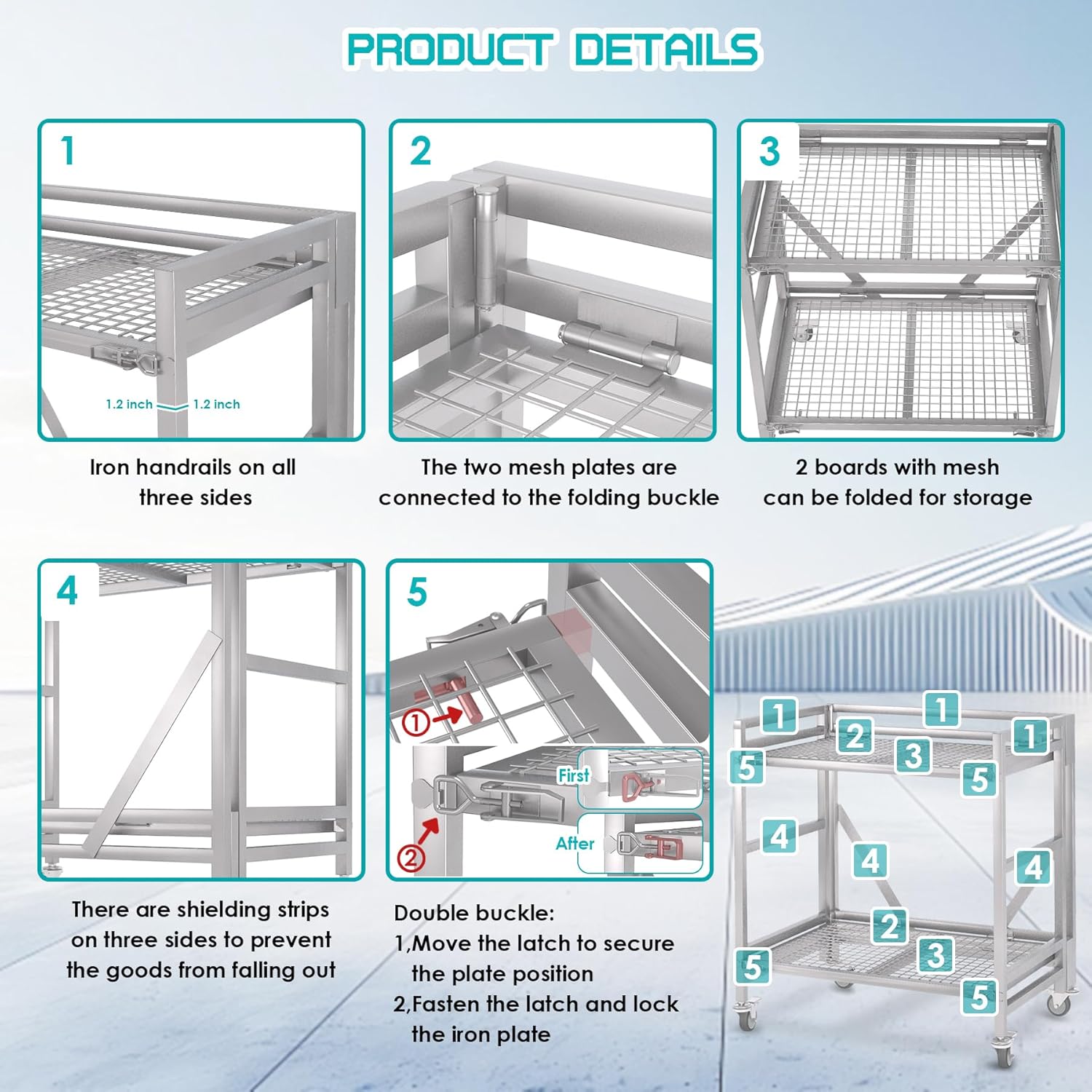 - 【Iron grid design】 thicken the handrails and plates of the trolley, and perform a detailed treatment on the edge of the trolley to better extend the lifespan. The trolley platform adopts a grid-like design, which increases its versatility and breathability, and does not accumulate water or soil. It can be used as a vending cart and barbecue grill, and is easy to clean