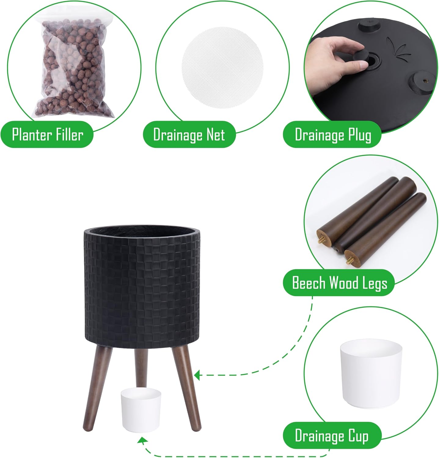 - Sturdy Wooden Legs: Supported by sleek wooden legs, this planter offers a stable base and enhances its overall aesthetic appeal.