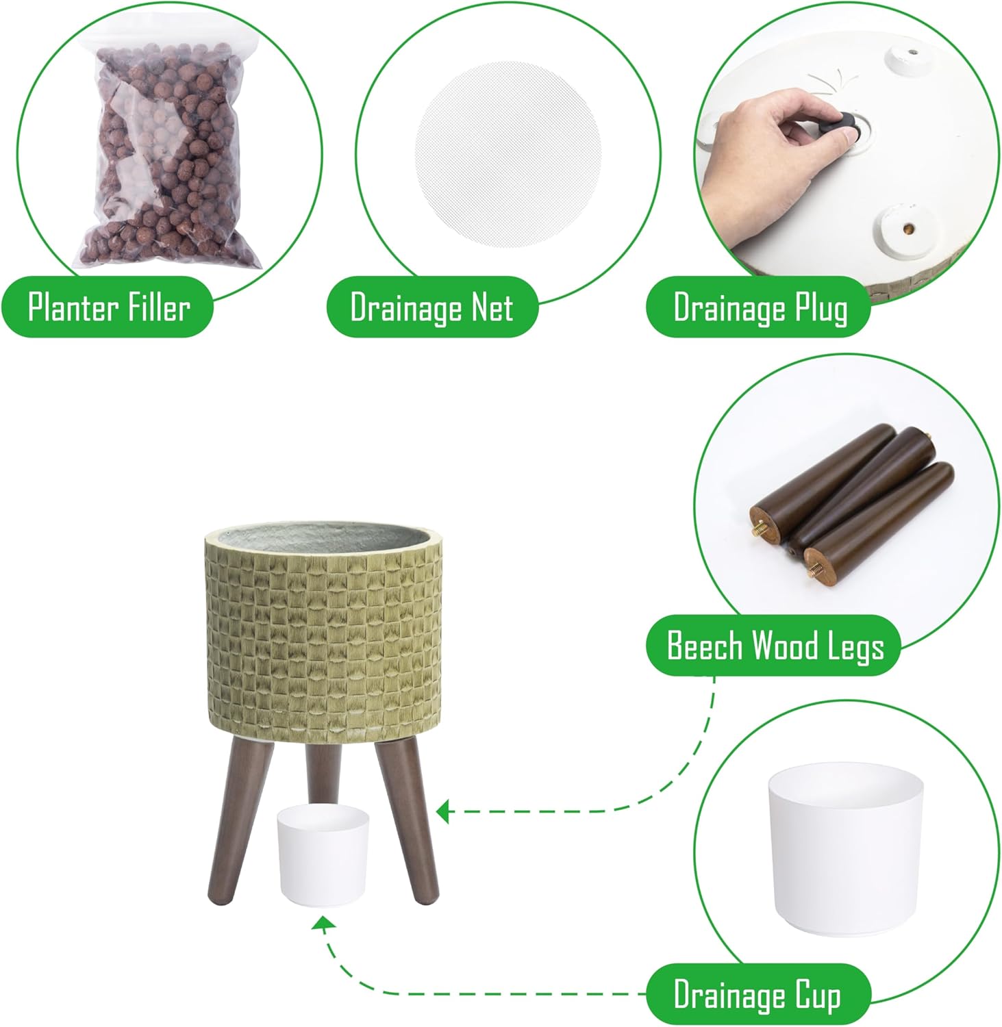 - Sturdy Wooden Legs: Supported by sleek wooden legs, this planter offers a stable base and enhances its overall aesthetic appeal.
