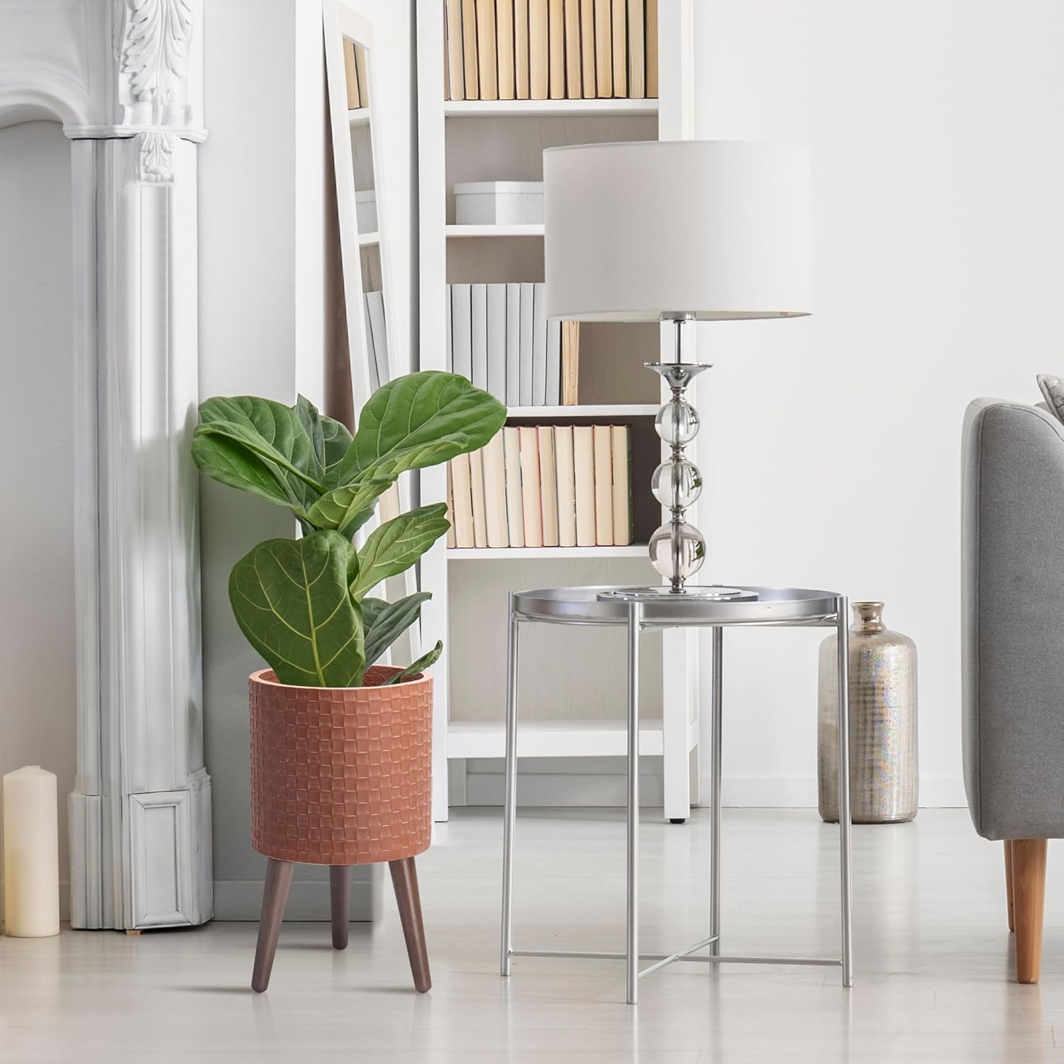 D'vine Dev 10 Inch Modern Geometric Tile Patterned Sleek Planter Pot with Stand, Indoor Outdoor Decorative Plant Holder, Terra Cotta, 88-Z-B-3