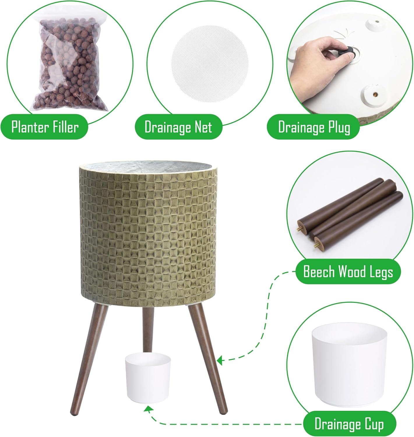 - Sturdy Wooden Legs: Supported by sleek wooden legs, this planter offers a stable base and enhances its overall aesthetic appeal.