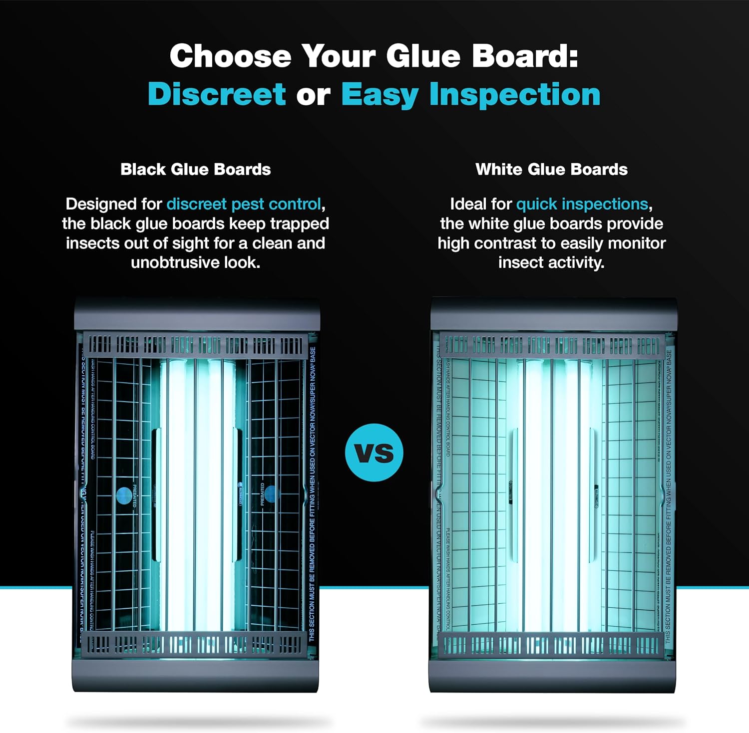 - GLUE BOARD REFILLS FOR UV TRAP: This set includes 12 replacement glue boards with perforations to create 24 glue boards compatible with Vector Fly Light Traps, including the Vector Classic, Vector Plasma Grill, Vector Plasma Screened, Vector Plasma One, Vector 15, Vector 30, and Vector Optima. The Vector Light Traps are sold separately.