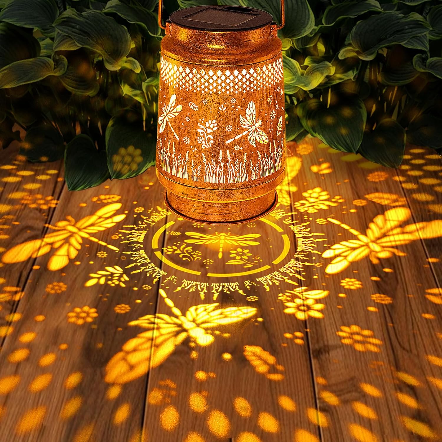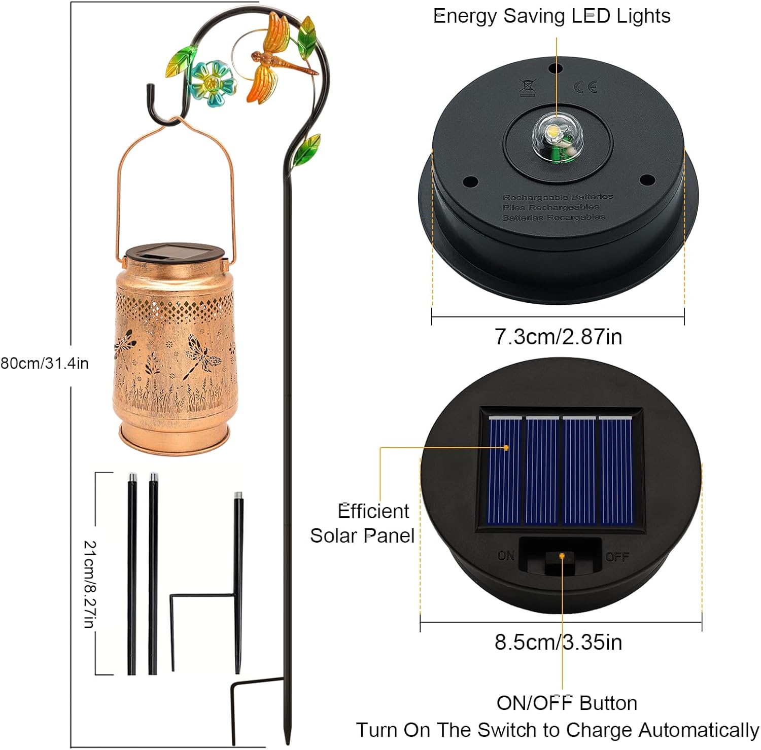 - Beautiful Solar Lanterns for a Cozy Garden - The antique bronze design and dragonfly pattern add such a charming touch to your garden. The lanterns cast a warm light at night and create such a peaceful atmosphere. Solar lanterns outdoor hanging lantern lights are a beautiful addition to any garden, yard, or patio space. Designed with a charming dragonfly metal decor, making them not only functional but also a stylish enhancement to your outdoor aesthetics.