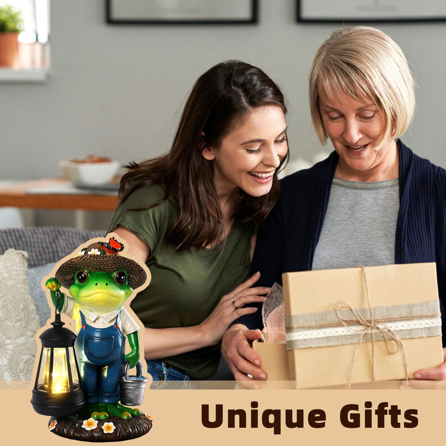 Solar Garden Decor - Frog Statues with Lantern 9" Resin Solar Frogs for Outdoors Patio Yard Porch Lawn Balcony Decor Ideas Animal Lover Gardening Gifts for Women Mom Wife
