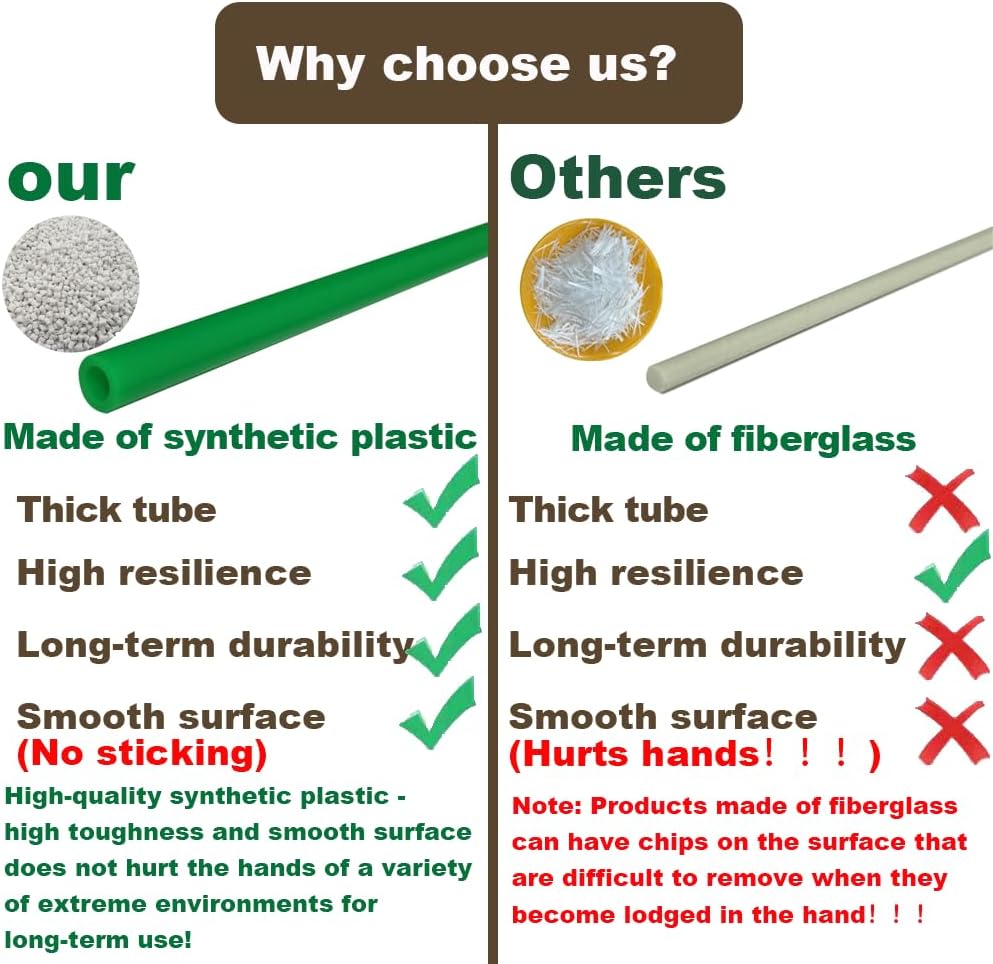 - Smooth Surface Without Splinters - Compared to garden hoops made of fiberglass, PP garden hoops have a very smooth surface without any small splinters that will not hurt the gardener's hands, and will not allow the mulch to become lodged with small splinters that would make the mulch unusable for a second use!
