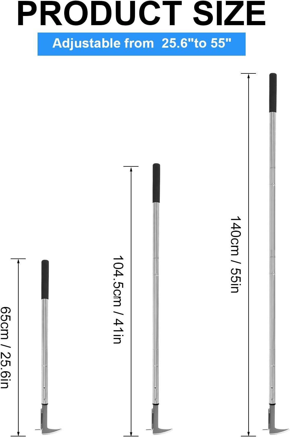 - Ergonomic Handle: 55" long stainless steel handle is ergonomic and easy to hold, which can reduce hand fatigue during long-term use and enhance control of delicate weeding tasks. The special blade shape can not only penetrate deep into the ground, but also tear up hard soil. It can be used in various outdoor environments