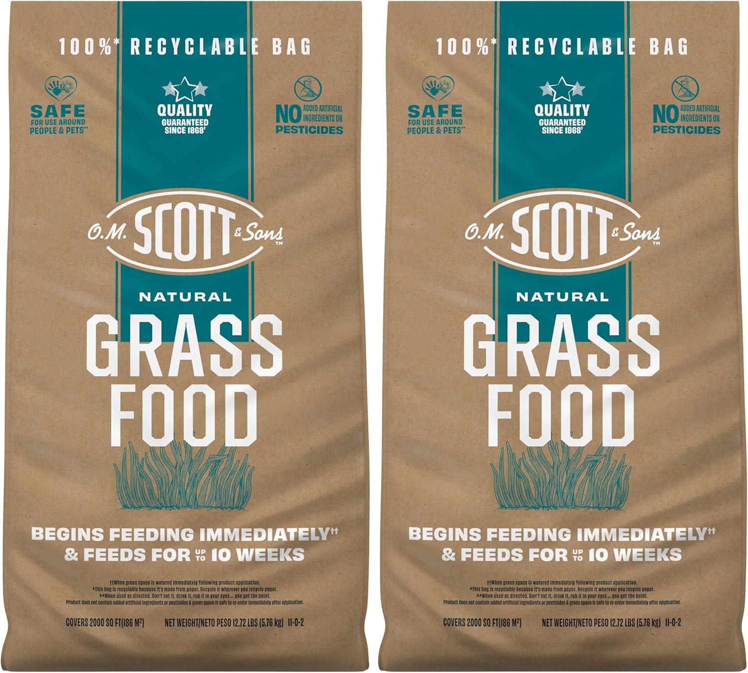 O.M. Scott and Sons Natural Grass Food, Food for Lawns, Fertilizes for up to 10 Weeks, Covers up to 2,000 sq. ft., 12.72 lbs., 2-Pack