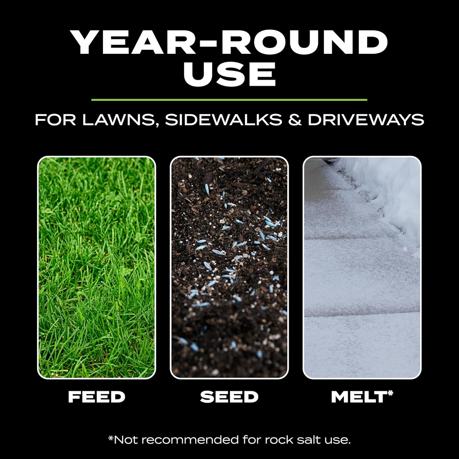 - Usage: Great for year-round use to weed, seed, fertilize and salt