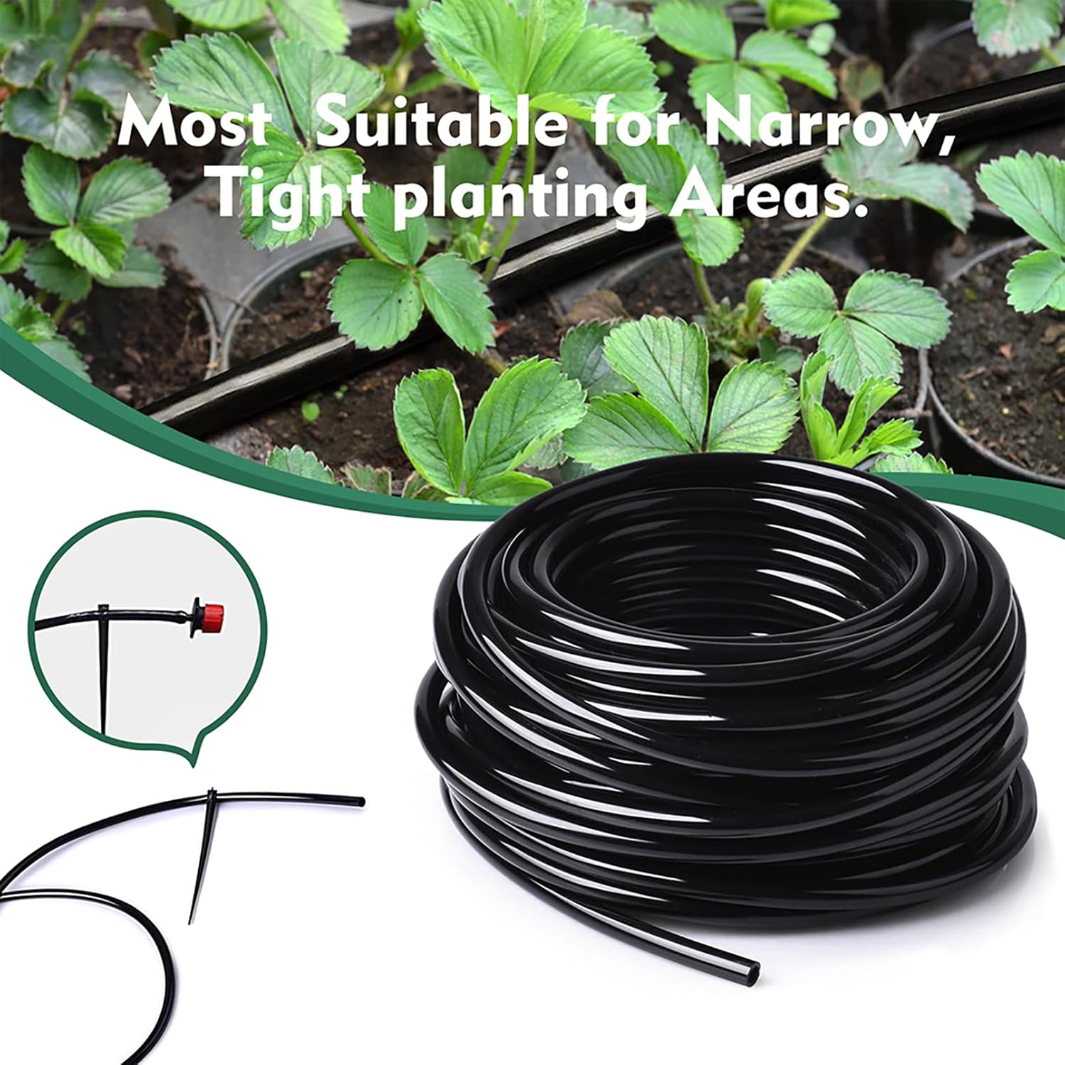 - 【Precision Watering for Tight Spaces】Perfect for narrow raised beds, dense flower patches, or winding greenhouse setups! Its 1/4" diameter and industry-leading flexibility snake effortlessly through tight corners and switchbacks – no bulky elbows needed.