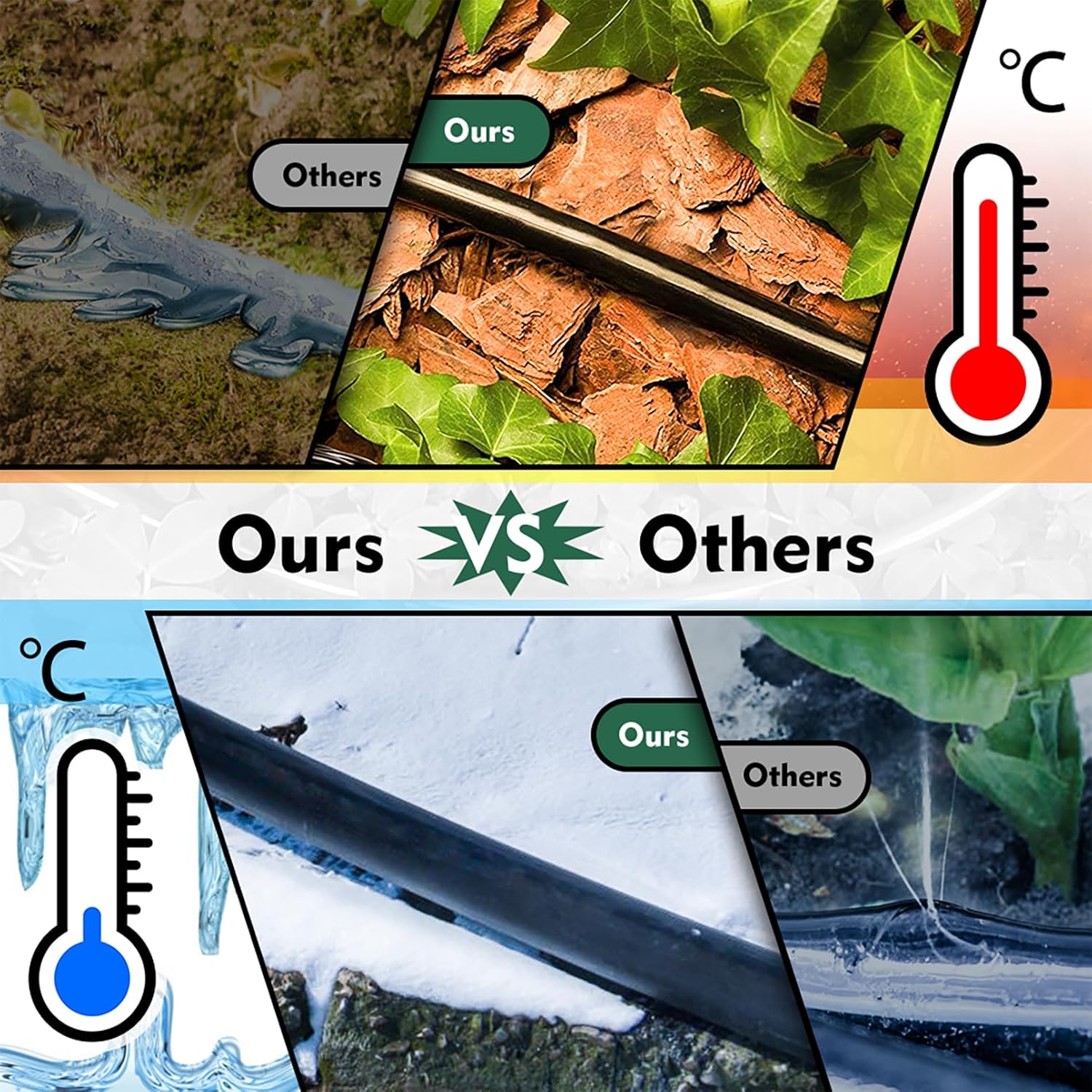 - 【Leak-Proof & Low Maintenance】Double-layer reinforced construction prevents leaks under sudden pressure changes. Leave installed year-round – survives snow, heavy rain, and intense summer heat while conserving 30%+ water vs. sprinklers.
