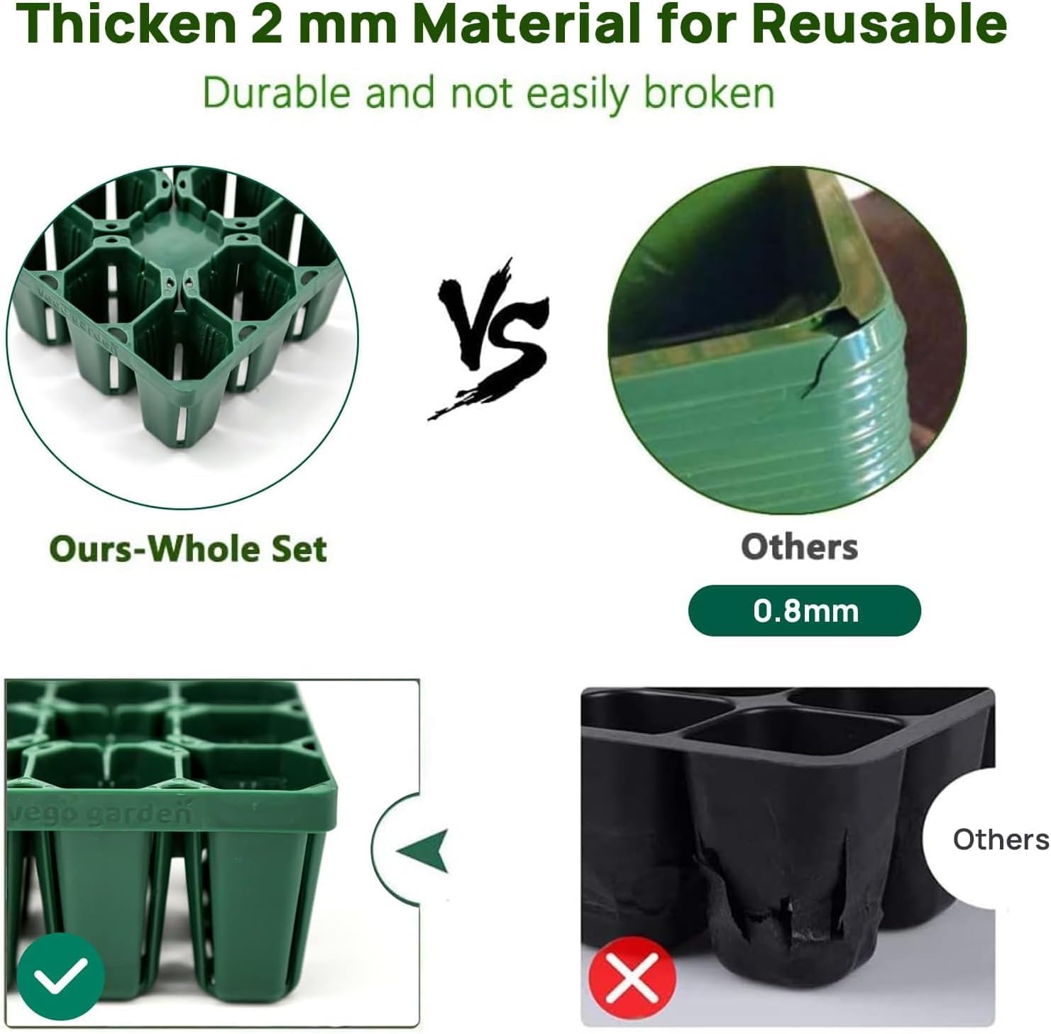 Vego garden Seedling Suite Products, 4 Pack Standard Seedling Trays with 10" x 10" Bottom Watering Trays