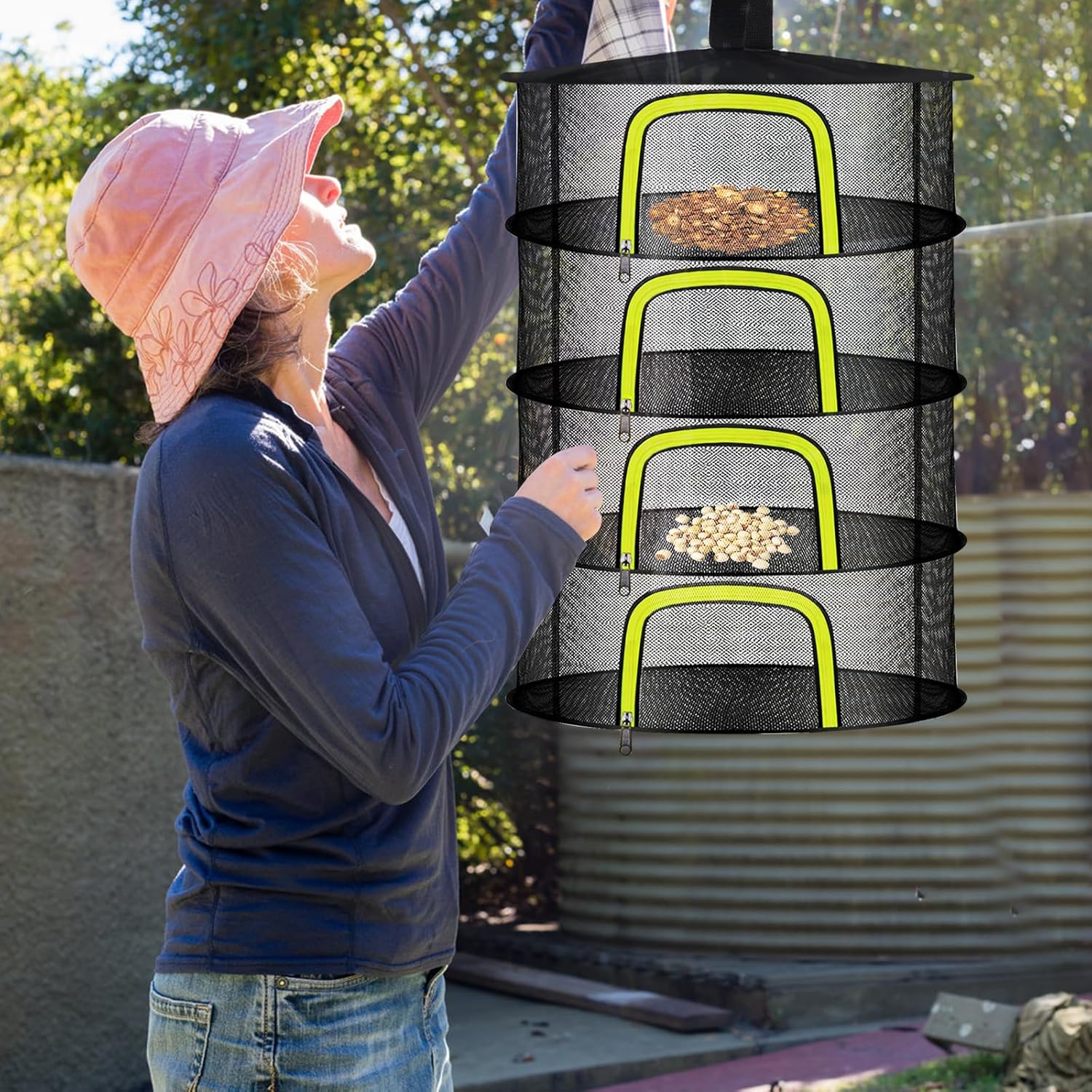 4 Layer Herb Drying Rack, Hanging Mesh Net, Foldable Plant Drying Rack With U-Shaped Zipper, Garden Trimming Shears and Hooks, For Drying Herbs Plants, Fruits, Seafood, Clothing(4 Layers-23.62'')